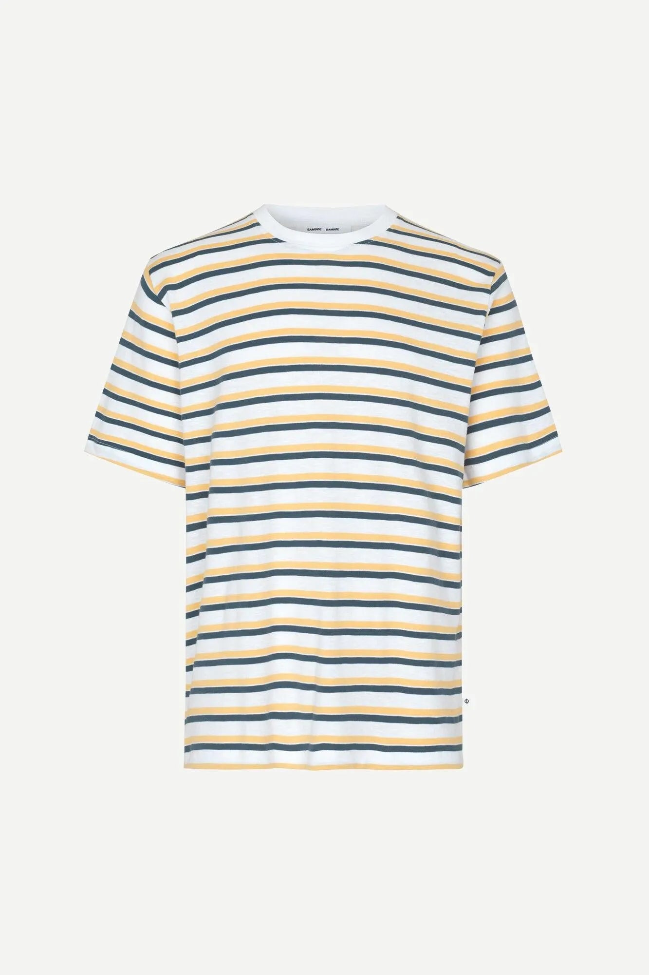 Lässig geschnittenes, gestreiftes Kurzarm-T-Shirt. Rundhalsausschnitt mit Rippbündchen. Strickstoff aus 100 % Bio-Baumwolle mit leichtem Garment-Wash-Finish.