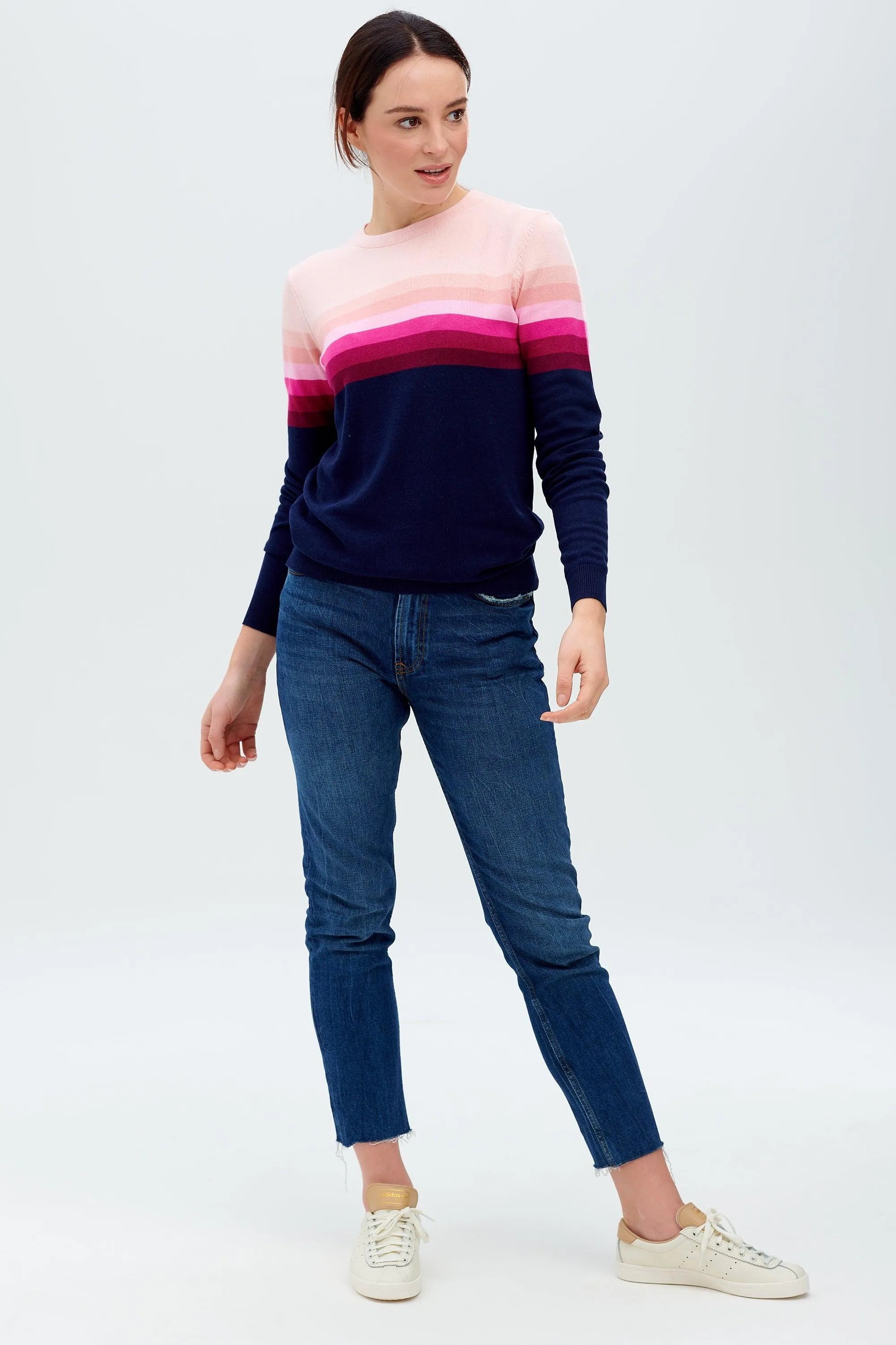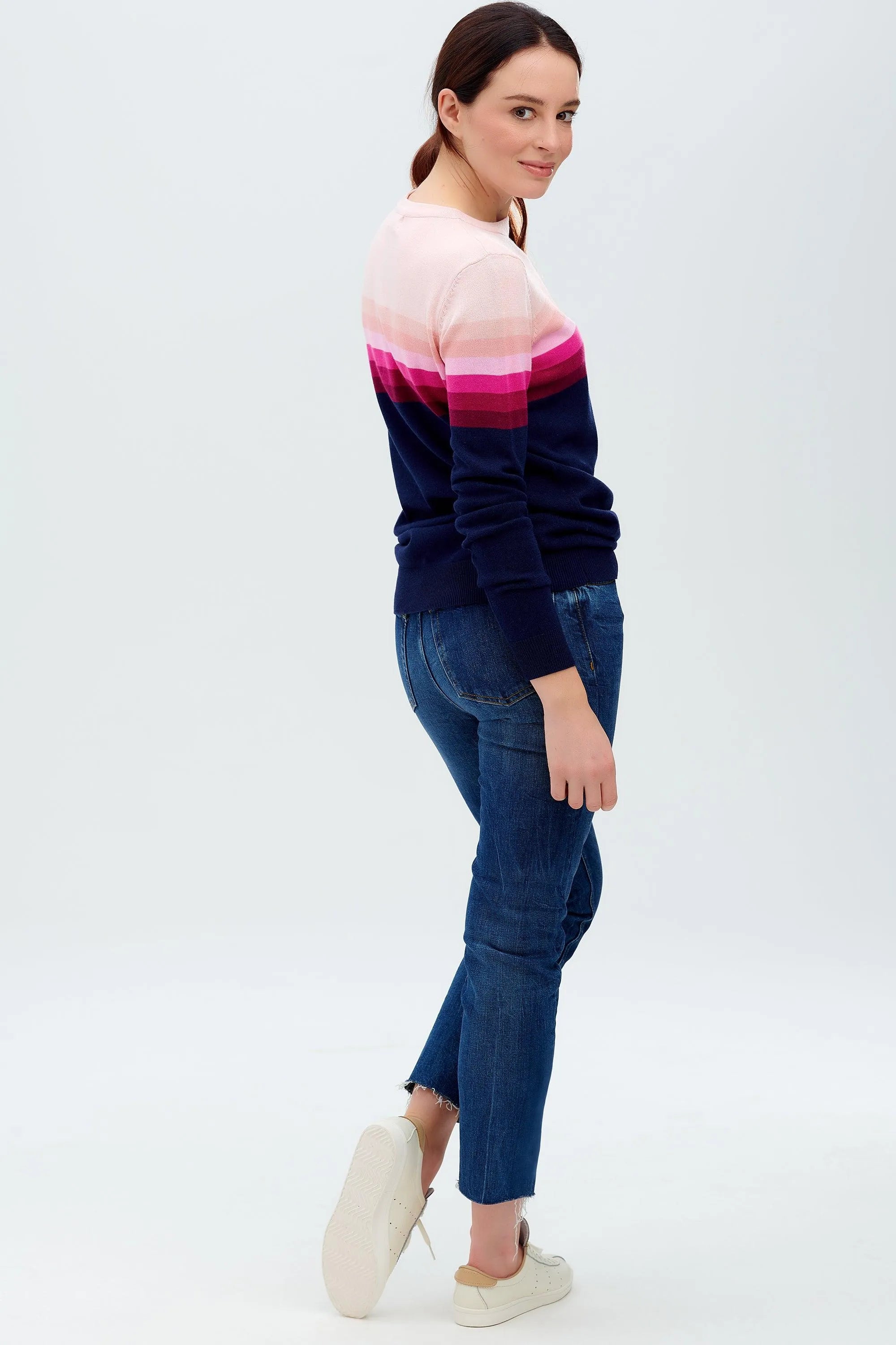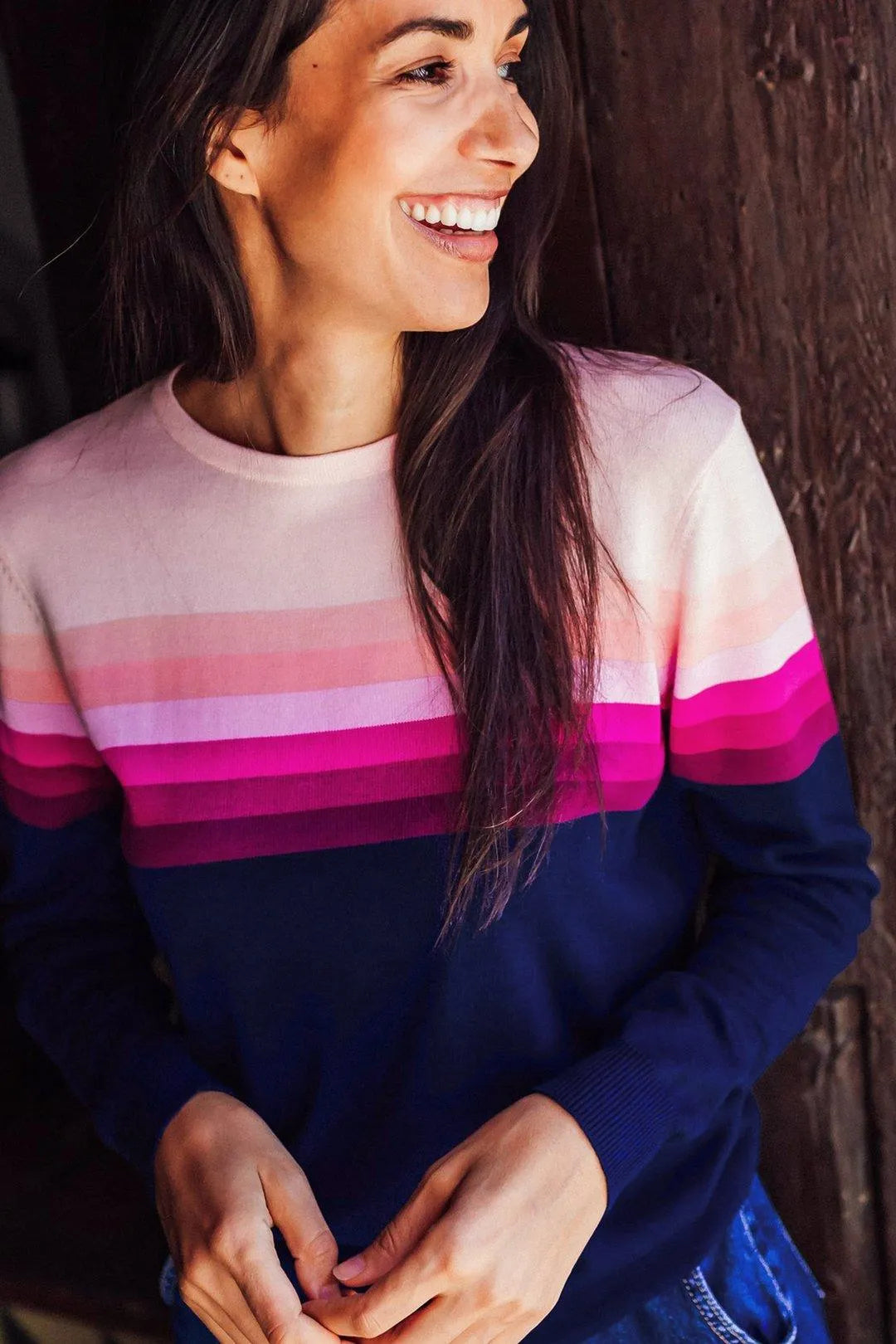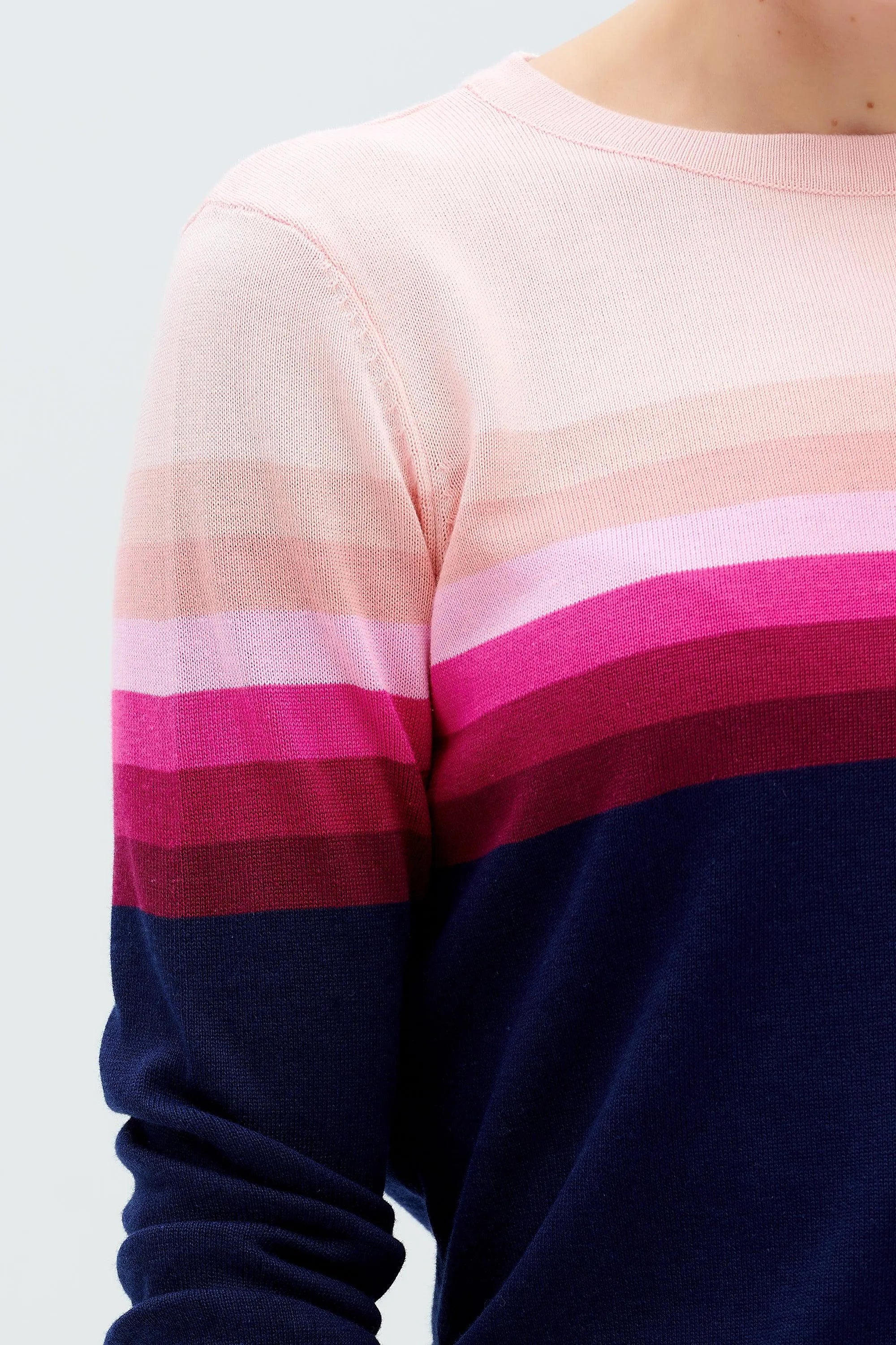 Rita Marineblauer Pullover, rosa Farbverlaufsstreifen