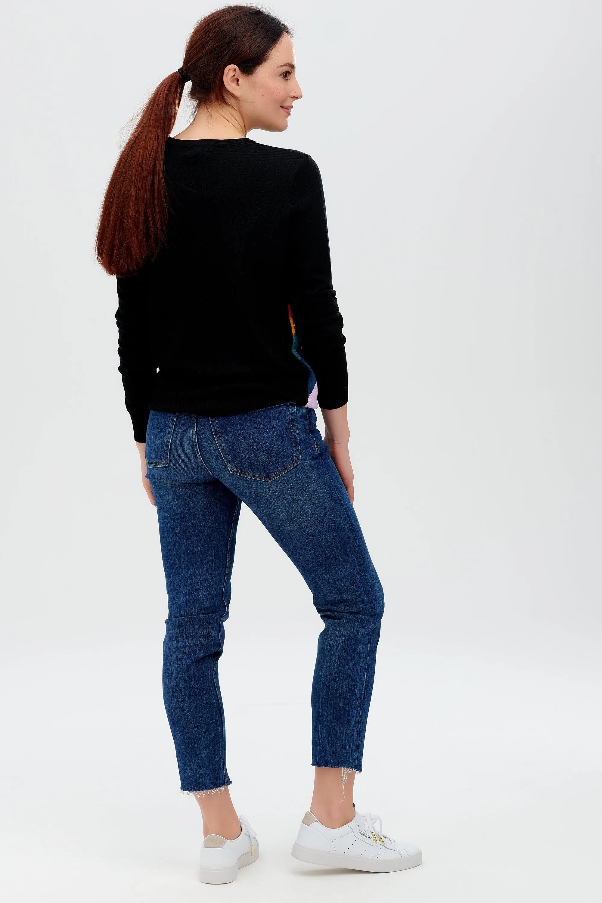 Unser meistverkaufter halb taillierter Rita-Pullover hat eine leichte Baumwollmischung, einen Rundhalsausschnitt und endet in der Mitte der Hüfte. Unsere Auswahl an Designs bietet eine einfache Möglichkeit, Ihrer Garderobe etwas Spaß und Farbe zu verleihen. Das lustige Raketendesign ist lebendig und retro, mit einer kitschigen Rakete und einer Regenbogenspur.