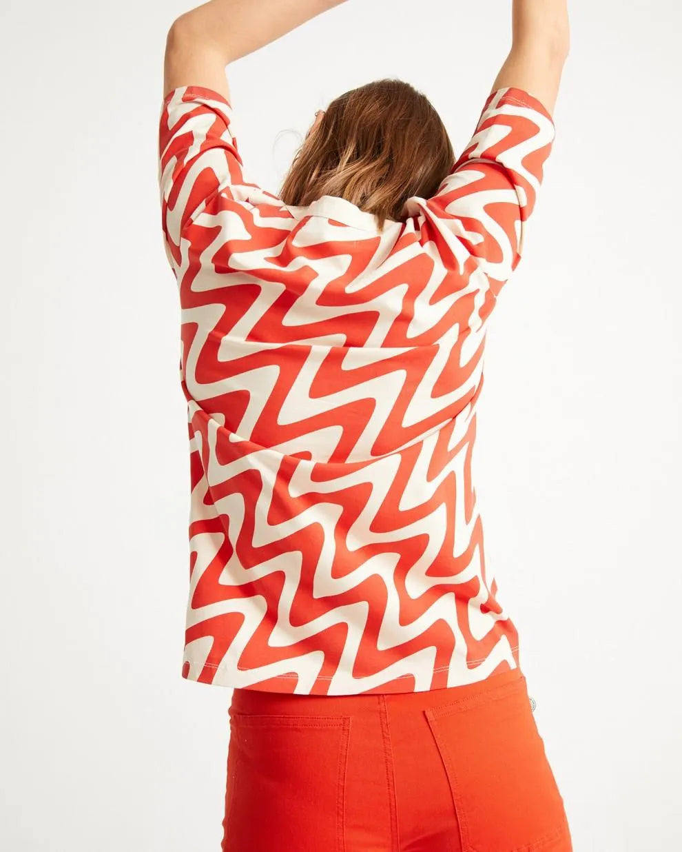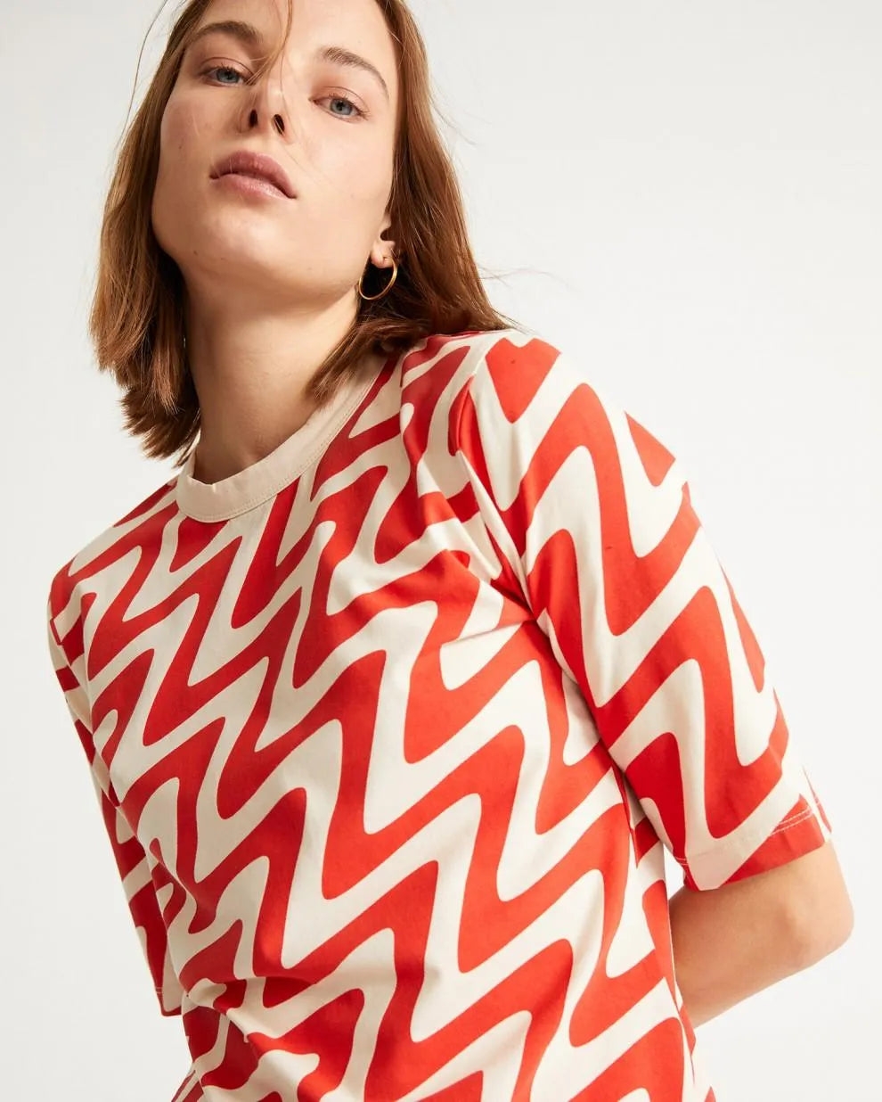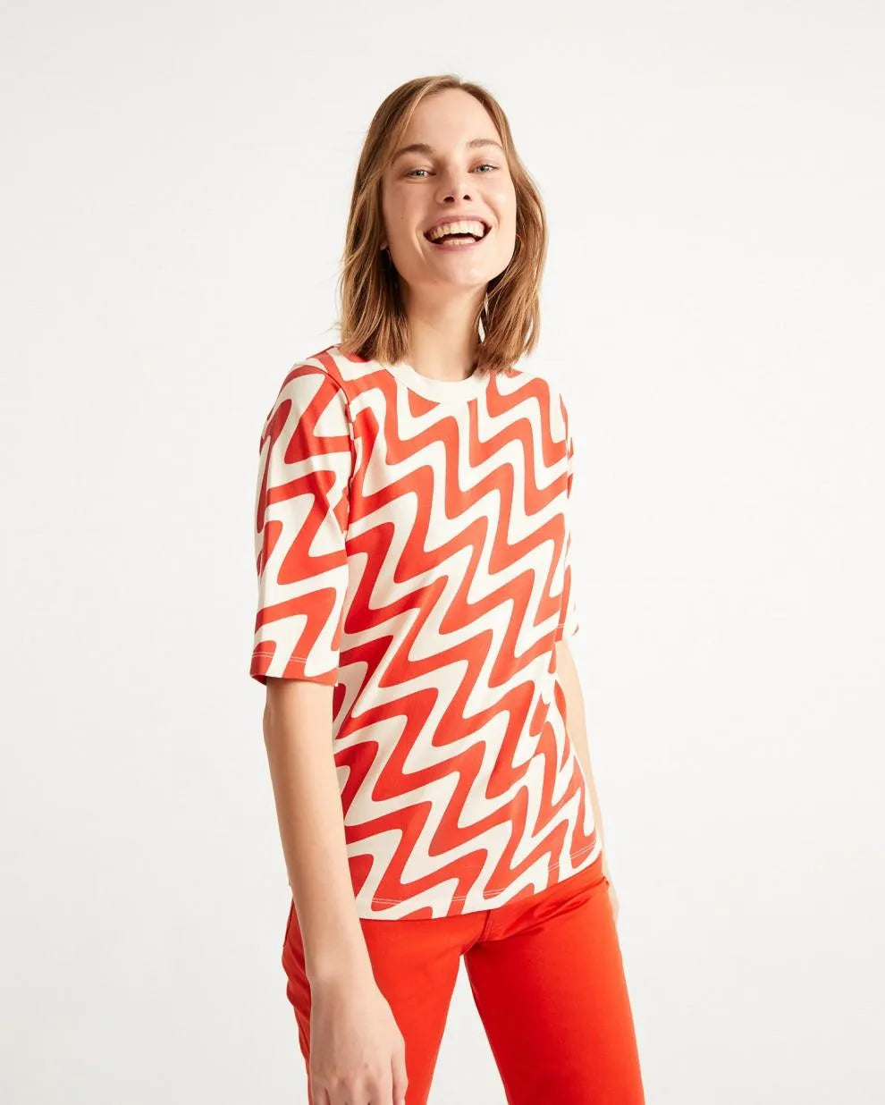 Bedrucktes T-Shirt aus Bio-Baumwolle. Mit Rundhalsausschnitt, Puffärmeln und geradem Schnitt.