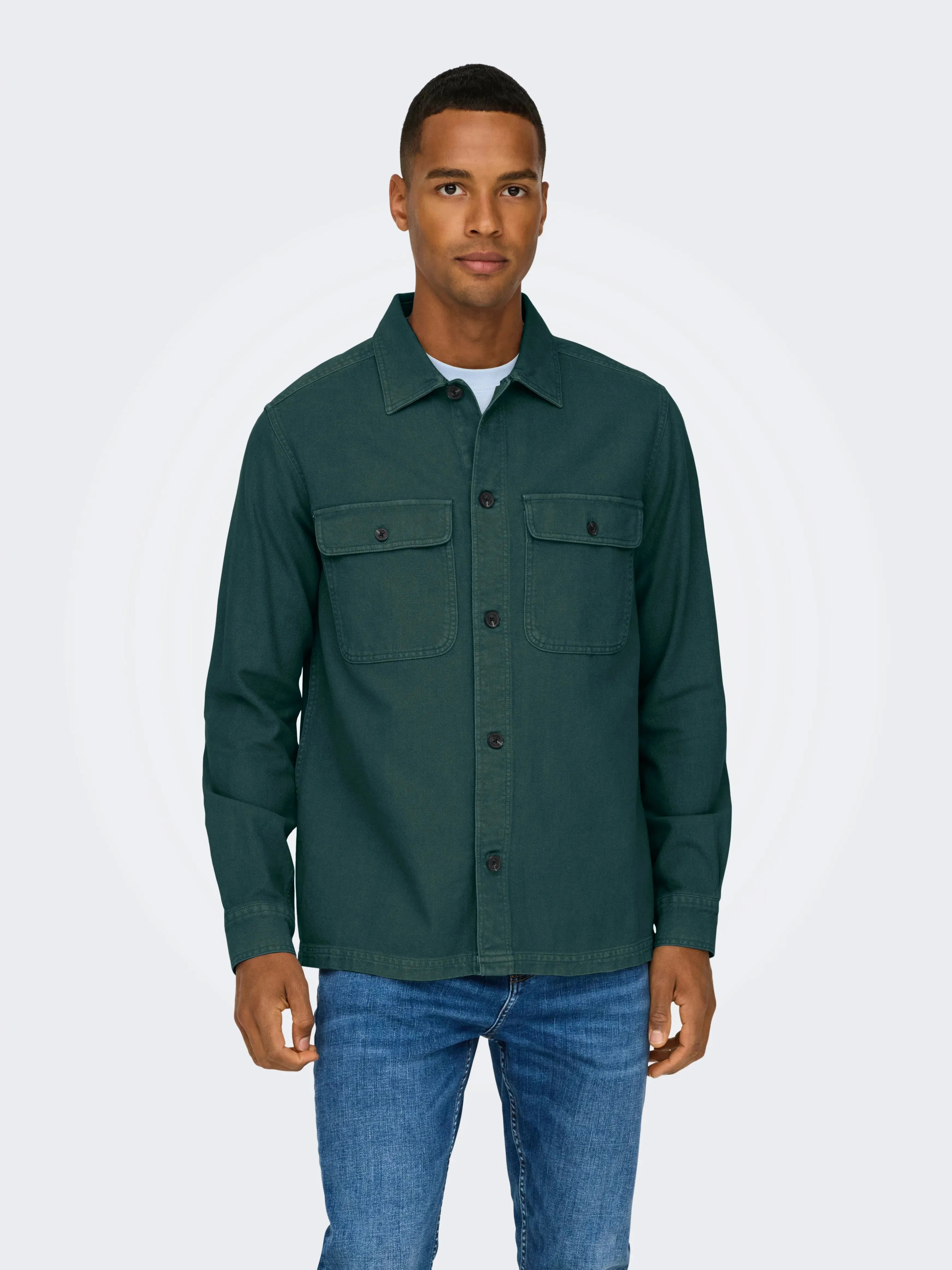 ONLY & SONS – Oliver – Überfärbtes Twill-Überhemd