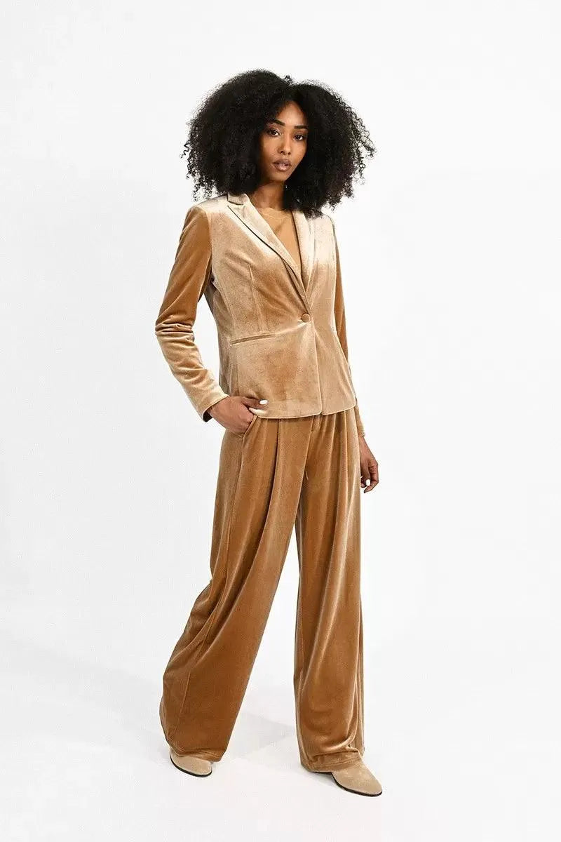 Blazer Molly Bracken de Terciopelo con Cuello y Solapa - ECRU