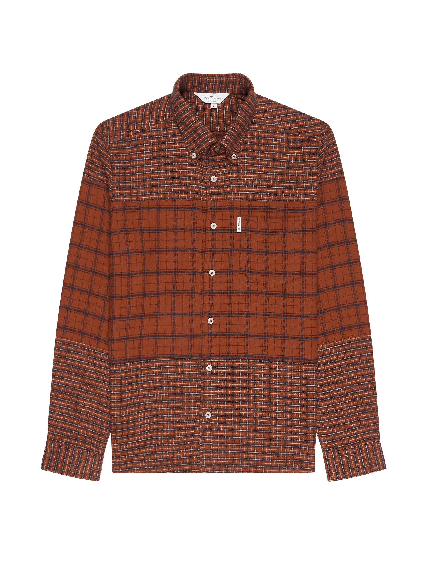 Flanellhemd mit zwei Karos und langen Ärmeln.