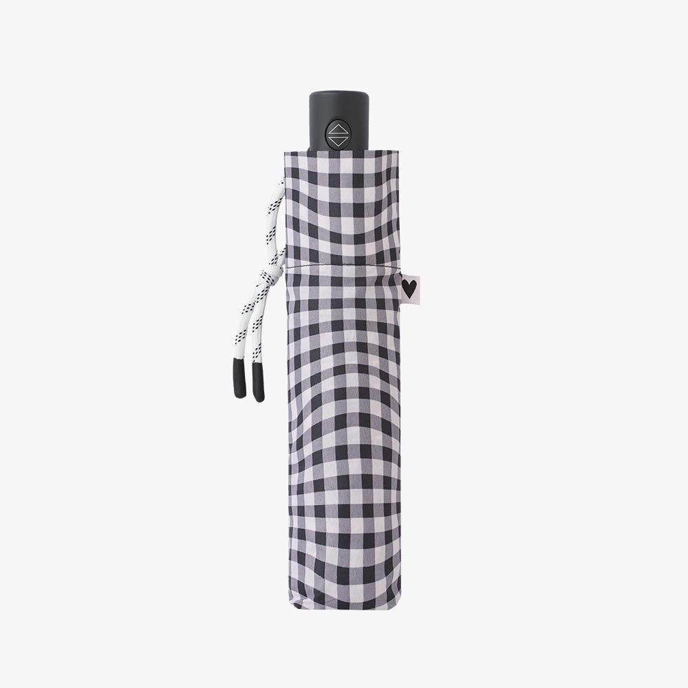Paraguas plegable Open+Close «Vichy». Se trata de un paraguas con tecnología Windproof y fabricado con tejido de poliéster reciclado y reciclable.
