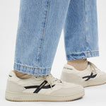 Ein Sneaker, inspiriert von Basketball-Sneakers der 80er, angepasst für den modernen Alltag. Hergestellt mit Obermaterial aus Nappaleder, einer Gummisohle und Baumwollschnürsenkeln.