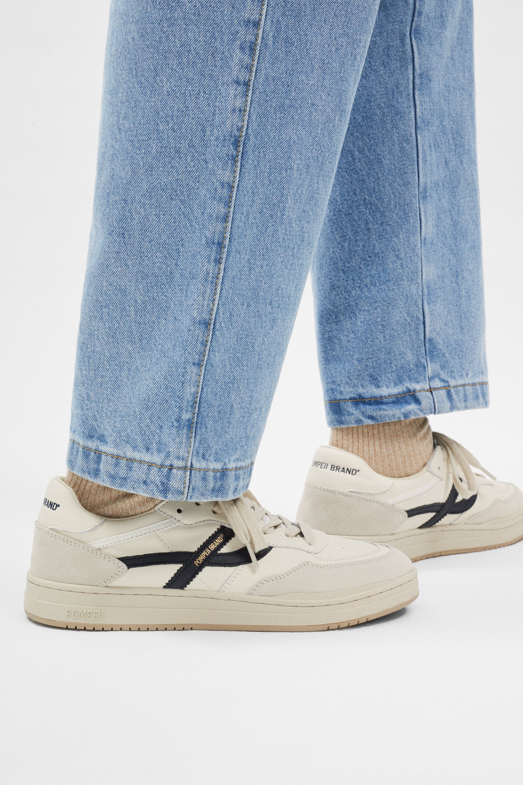 POMPEII Elan Pippa Leder Ecru Navy Sneakers