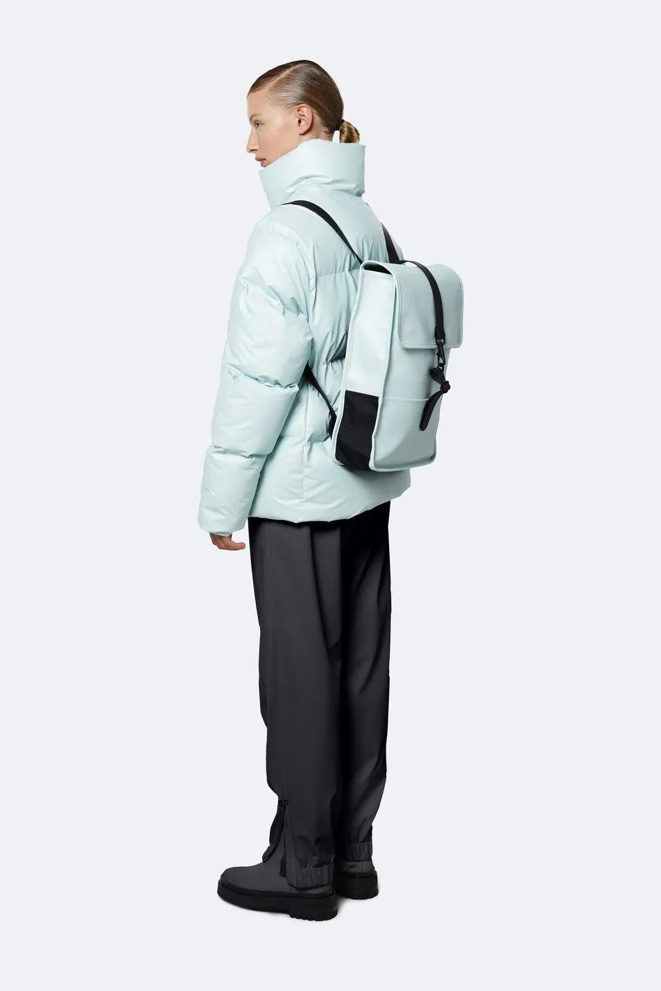 Backpack Mini ist eine kleinere Version des klassischen Rains Backpack-Stils. Dieser moderne, minimalistische Rucksack aus wasserabweisendem Stoff mit mattem Finish verfügt über eine Laptop-Innentasche, ein geräumiges Hauptfach und eine versteckte Handytasche auf der Rückseite. Es wird mit Magnetverschlüssen, Karabinerverschlussdetails und verstellbaren Trägern vervollständigt.