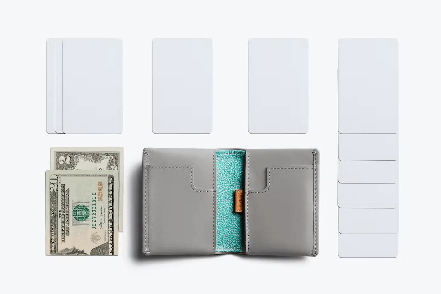 Das Slim Sleeve Wallet ist optisch leicht zu unterschätzen, aber es schafft eine echte Balance zwischen Größe und Funktionalität. Die beiden am häufigsten verwendeten Karten werden in die externen Steckplätze gesteckt, während eine Lasche den Zugriff auf die weniger häufig verwendeten erleichtert. Die meisten Währungen passen in der Mitte zusammengefaltet und alles lässt sich ordentlich in einer schönen, kompakten Brieftasche verstauen.
