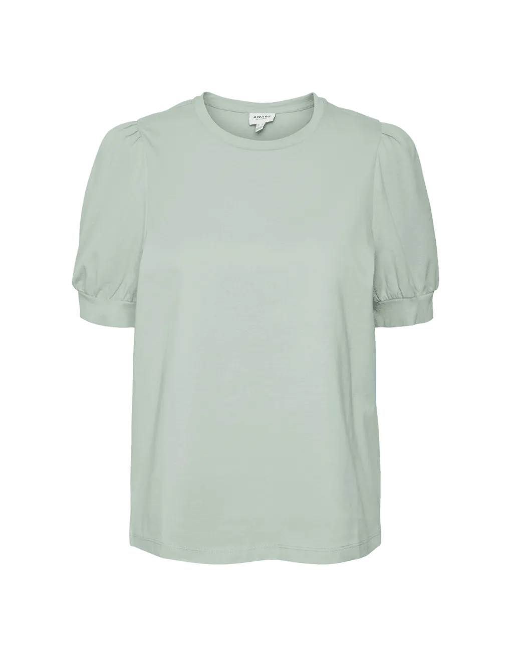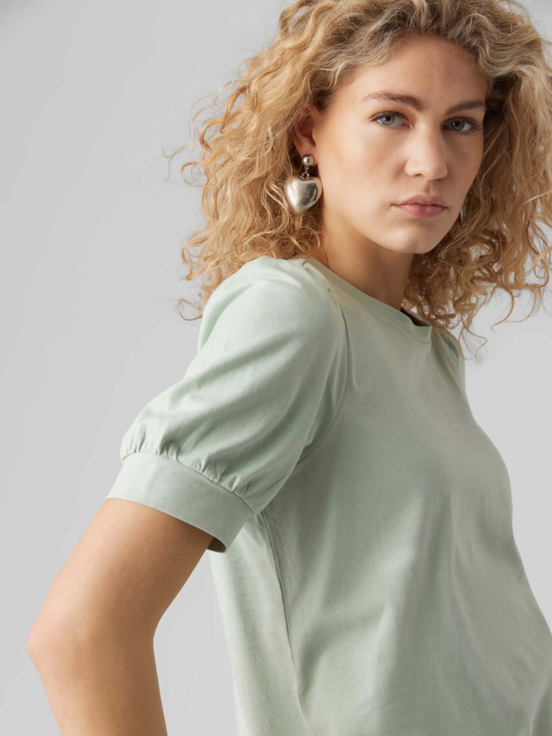 Camiseta de Mujer Vero Moda Manga Corta Abullonada Kerry Silt Green - ECRU