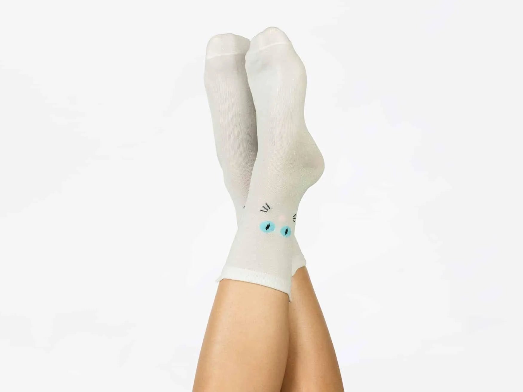 Lustige und bequeme Socken in Form einer weißen Katze. Eine Grösse passt allen.