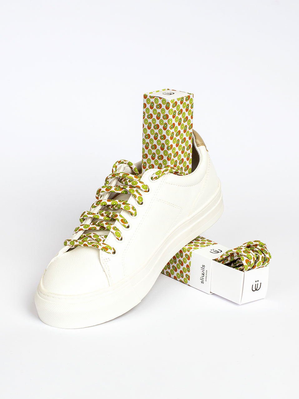 Los cordones Sliwils Tropical Kiwi son un accesorio vibrante y original diseñados para aportar un toque fresco y veraniego a tus zapatillas. Su estampado inspirado en motivos tropicales evoca energía y vitalidad, añadiendo un detalle divertido y colorido a looks casuales y urbanos.