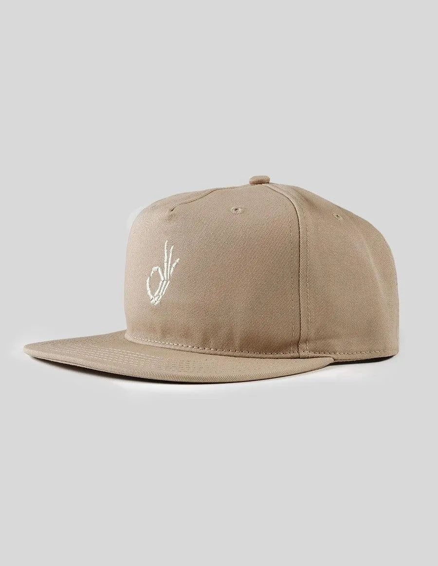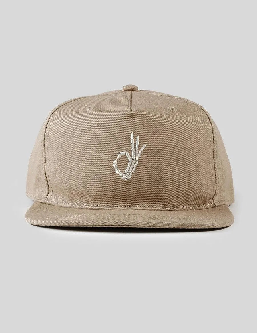 Lässig cool. Gestickte Okay-Grafik auf einer unstrukturierten 5-Panel-Kappe.