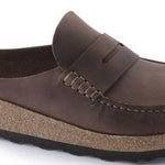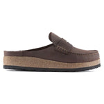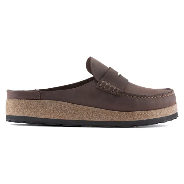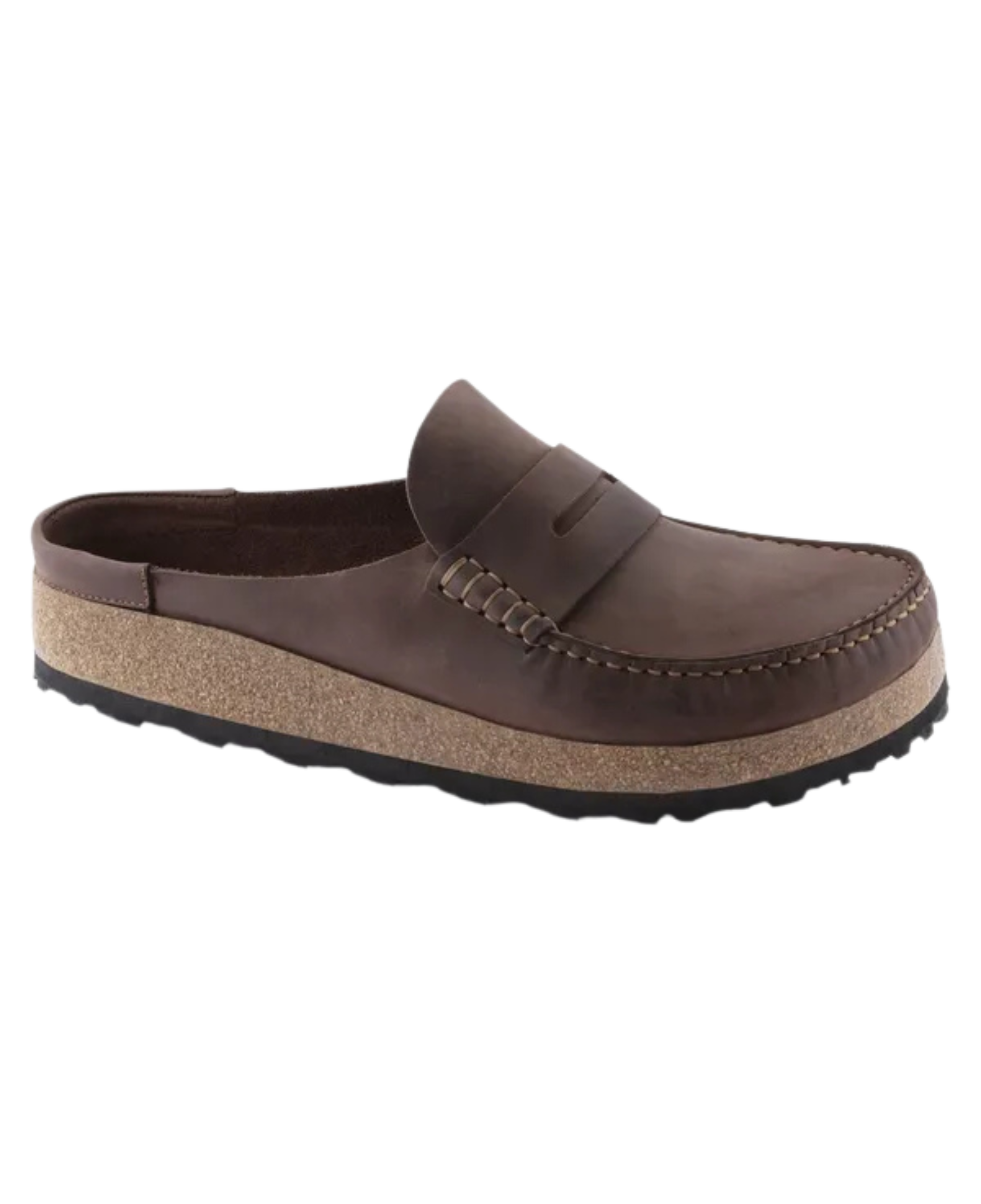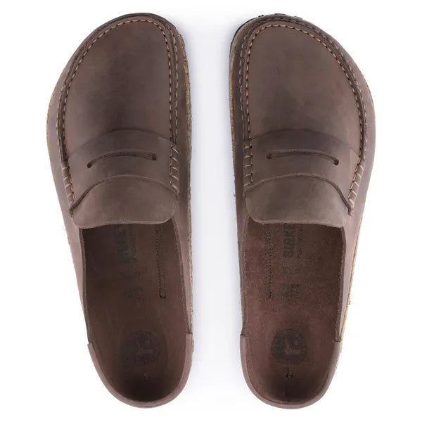 Das Modell Naples Wrapped von BIRKENSTOCK ist die geschlossene Variante des beliebten Buckley Clogs. Der Mokassin-Stil mit markanter Naht verleiht der Sandale einen markant maskulinen Look. Die Sohle sorgt dank ihrer Zweikomponenten-Konstruktion für sicheren und bequemen Sitz. Sie besteht aus einer dämpfenden EVA-Zwischensohle und einer Laufsohle aus echtem Gummi. Das Obermaterial besteht aus extra dickem, geöltem Nubukleder, das an den Kanten nahtlos vernäht ist.
