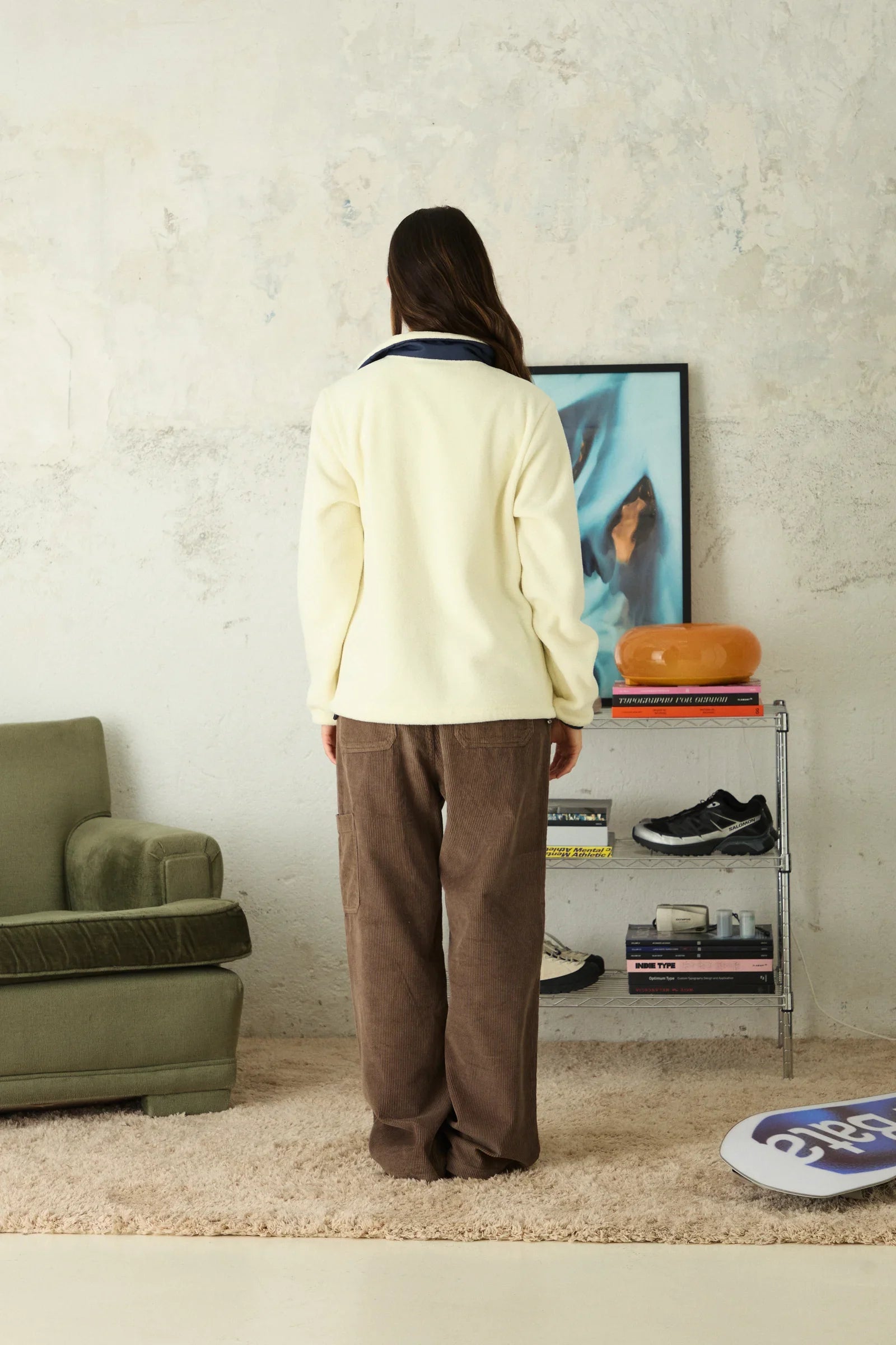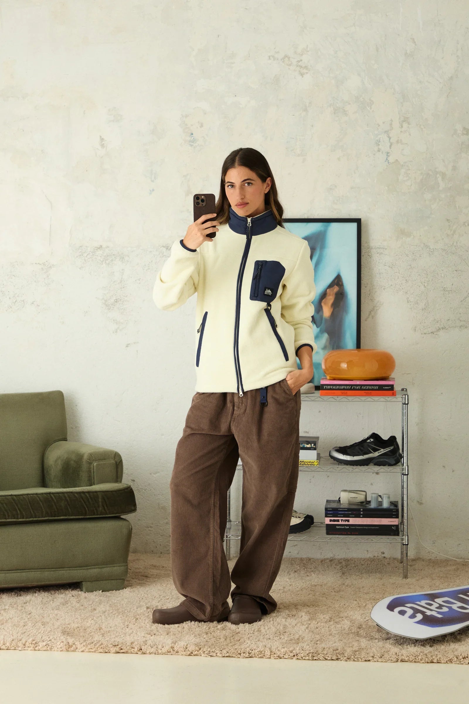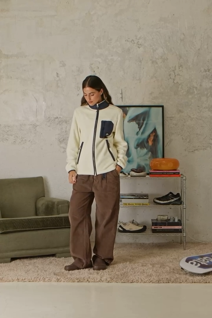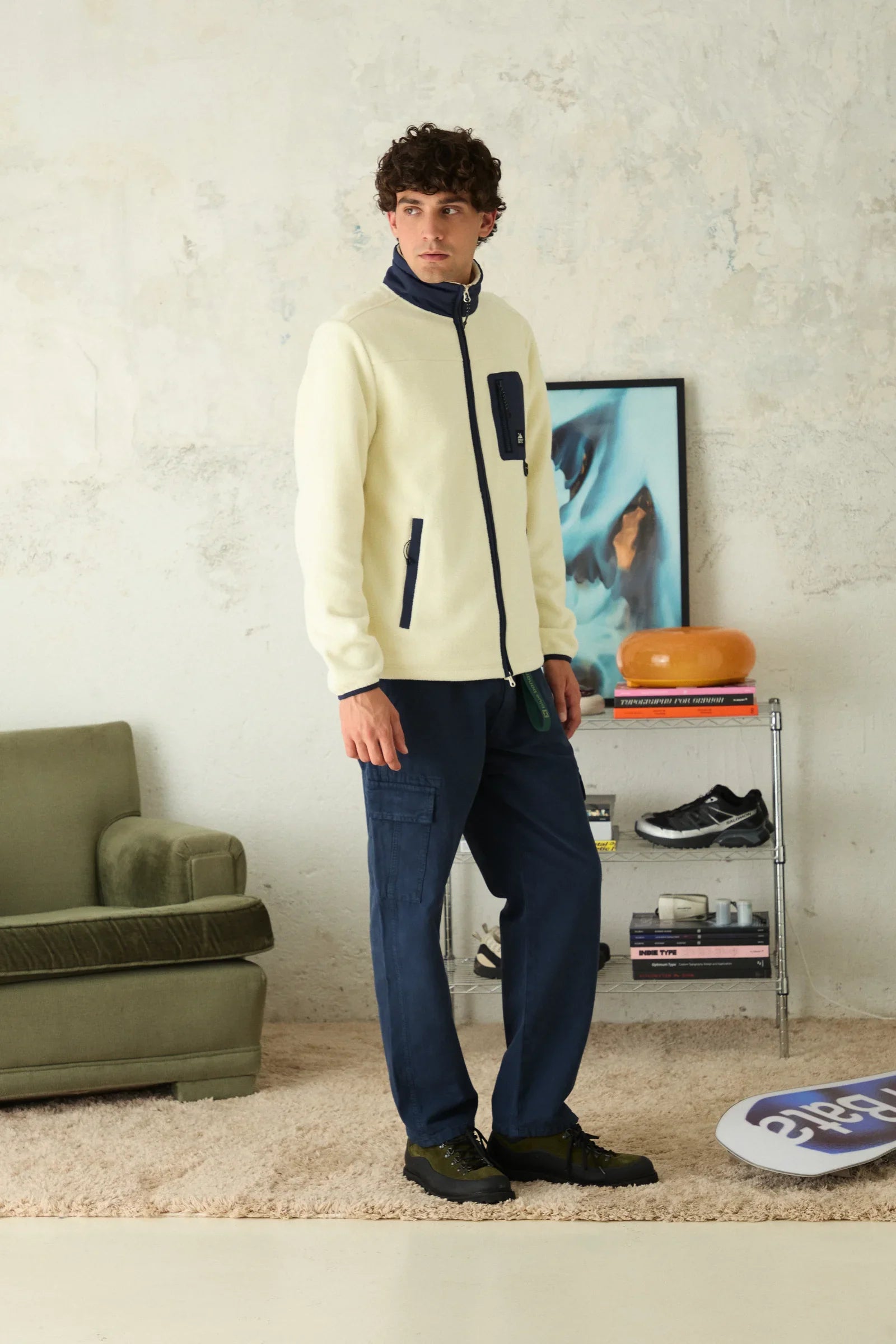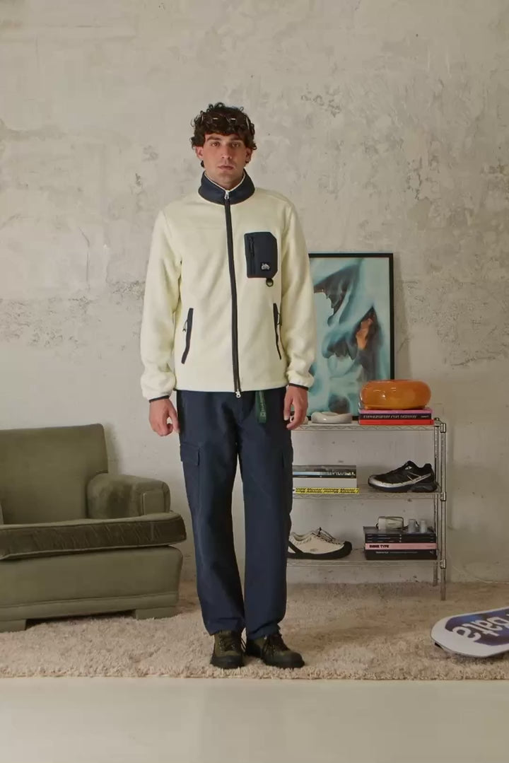 La Chaqueta BLUE BANANA unisex Off-White Tent Polar Jacket combina estética outdoor y confort urbano. Fabricada en poliéster reciclado tipo polar, ofrece un acabado cálido y suave en tono blanco roto con cierres en contraste y detalle de logo bordado en el pecho. Su diseño de inspiración técnica incluye cuello alto, cremallera frontal, bolsillos funcionales y un ajuste regular que la convierte en una prenda versátil para el día a día o escapadas al aire libre.