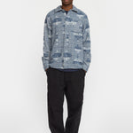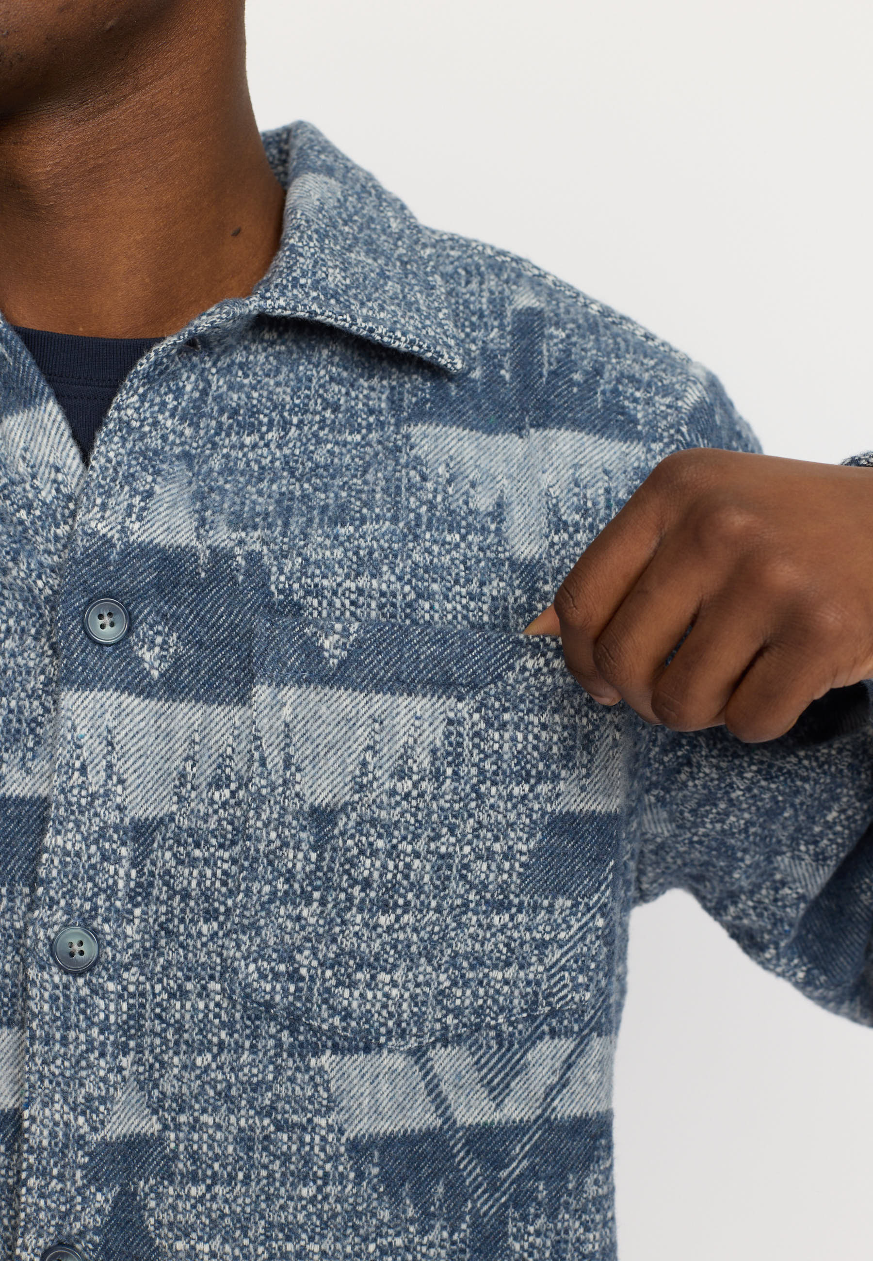 Ein mittelschweres Hemd aus weichem, gebürstetem Baumwollstoff in Wolloptik. Dieses lässige Hemd hat eine einzelne, scharf geschnittene Brusttasche und eine Button-Down-Front mit farblich abgestimmten Vierlochknöpfen. Das Hemd besticht durch den charakteristischen gewebten geometrischen Print in sanften Blautönen. Es verfügt über eine Halsschlaufe zum einfachen Aufhängen und verstellbare Manschetten für mehr Komfort – perfekt für Ihren Alltagslook bei kaltem Wetter. Für zusätzliche Stabilität und Bewegungsfreiheit ist das Hemd mit einer doppellagigen Passe und einer Mittelfalte auf der Rückseite gefertigt.