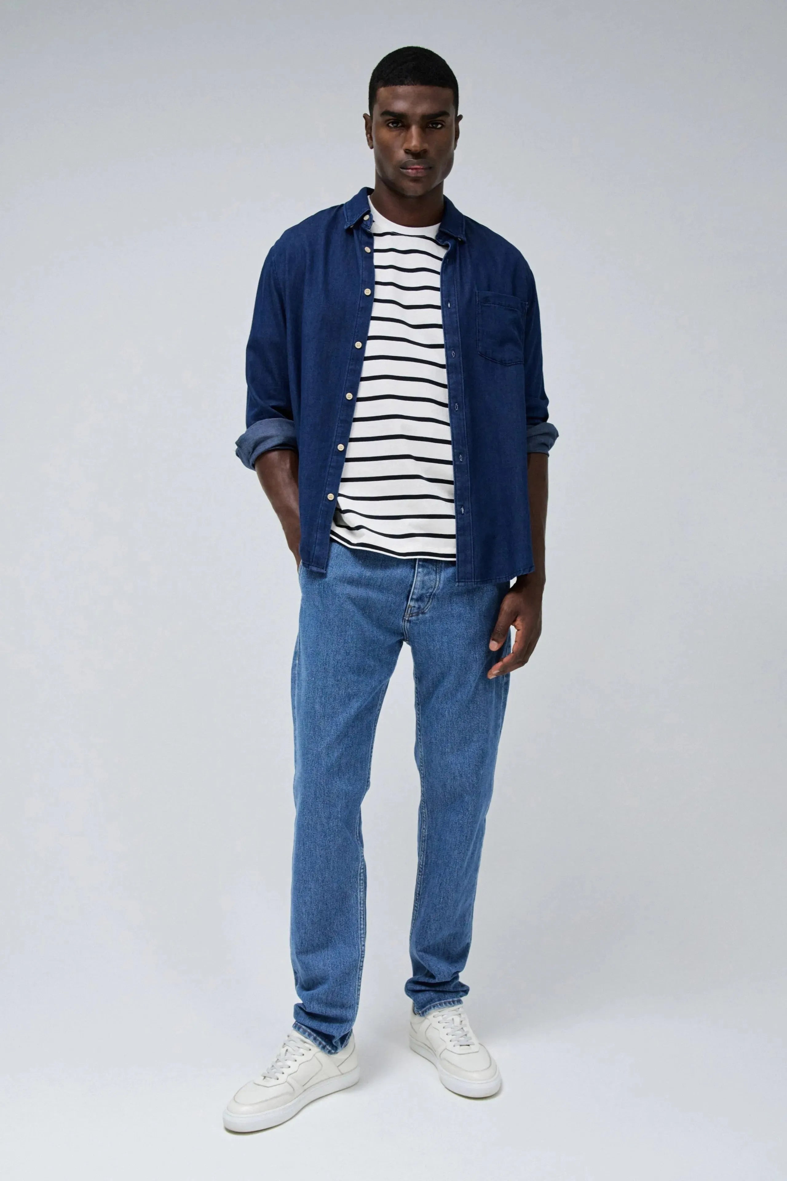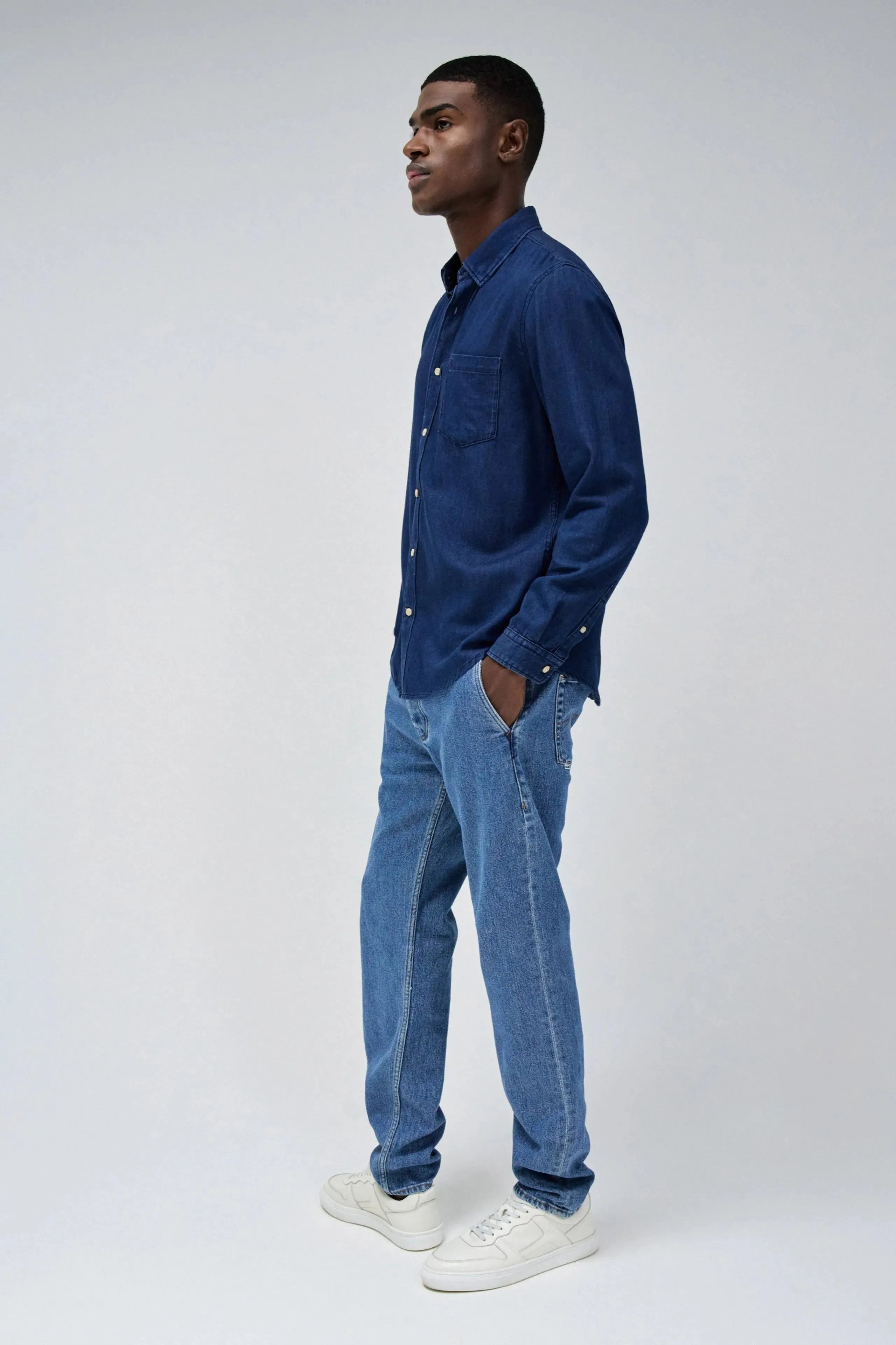 Dieses Jeanshemd verfügt über raffinierte Details wie die Knopfleiste vorne und den Hemdkragen, die ihm einen Hauch von Raffinesse verleihen. Die langen Ärmel runden den Look ab und machen ihn perfekt für legere und formellere Anlässe. Ob im Büro, bei Ausflügen mit Freunden oder bei entspannteren Veranstaltungen, dieses blaue Hemd ist eine unverzichtbare Wahl für Männer.