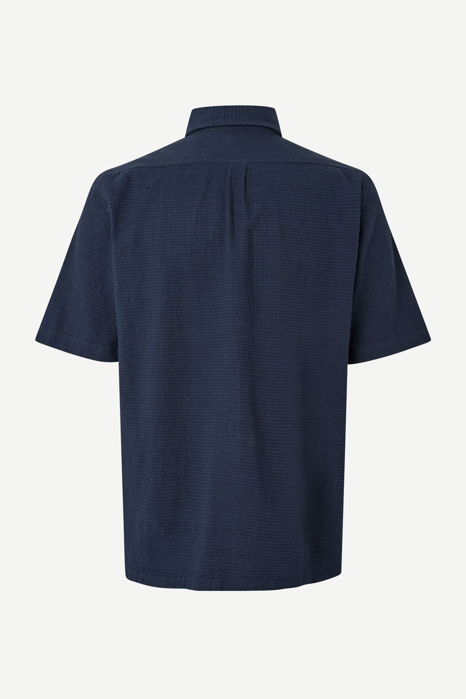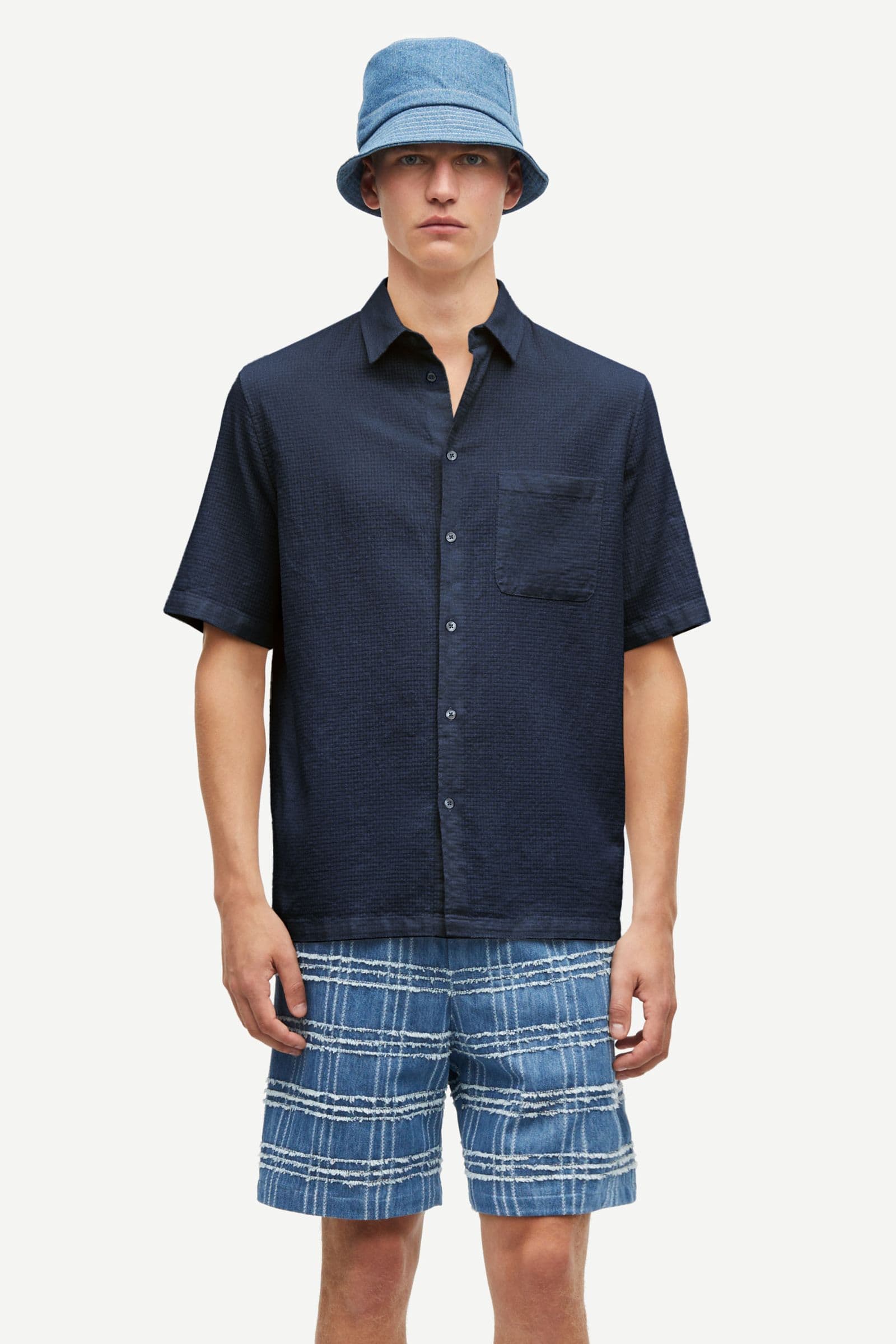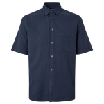 Strukturiertes Kurzarmhemd im Regular-Fit. Button-Down-Front. Eine aufgesetzte Brusttasche. Abgenähte Kragenpasse mit Falte. Hauptmaterial: Leinen-Baumwoll-Mischgewebe.