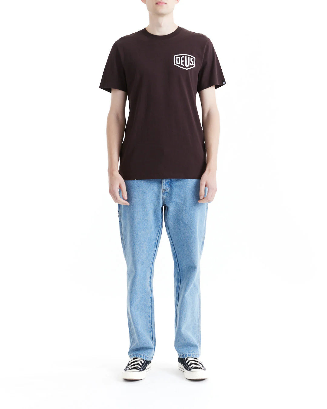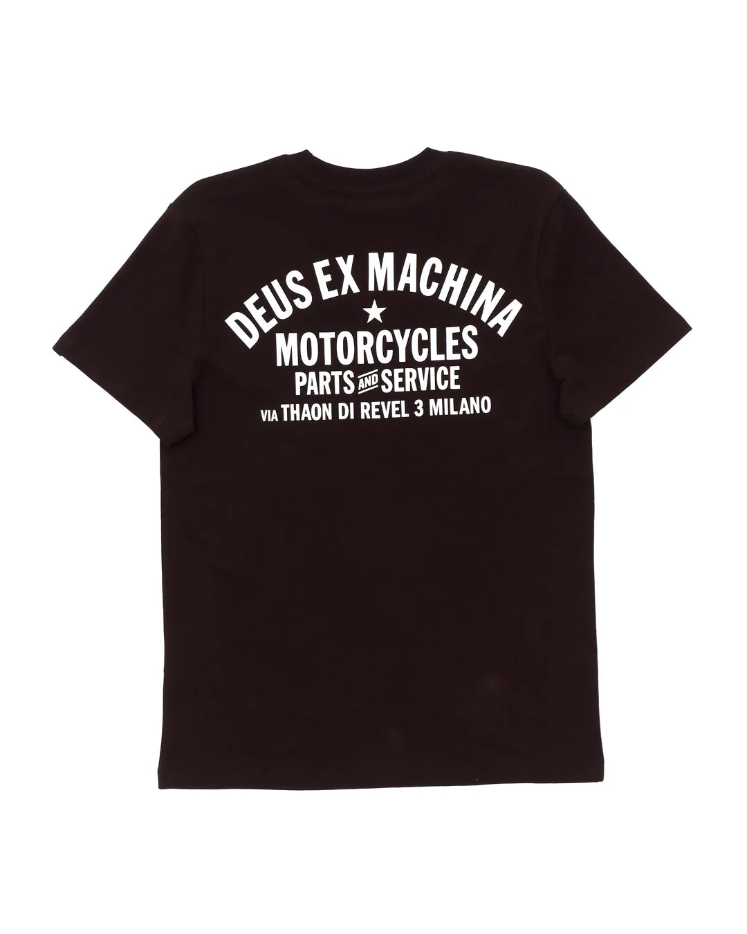 DEUS EX MACHINA Classic Kollektion. Regular-Fit T-Shirt mit der Mailänder Adresse aus 190 g/m² Baumwolljersey. Wappenlogo auf der Vorderseite und Adresse auf der Rückseite. Design von Deus House of Simple Pleasures.