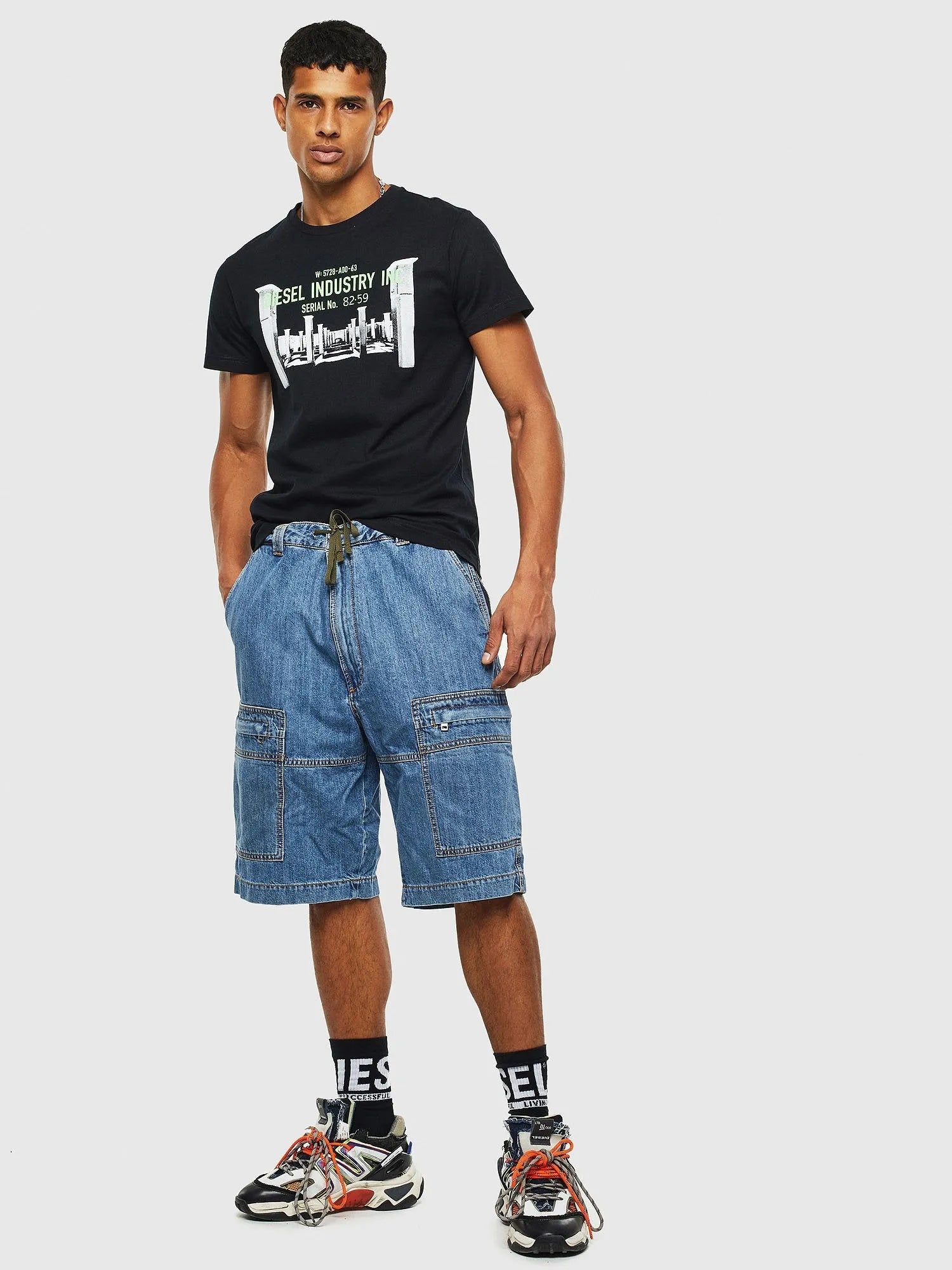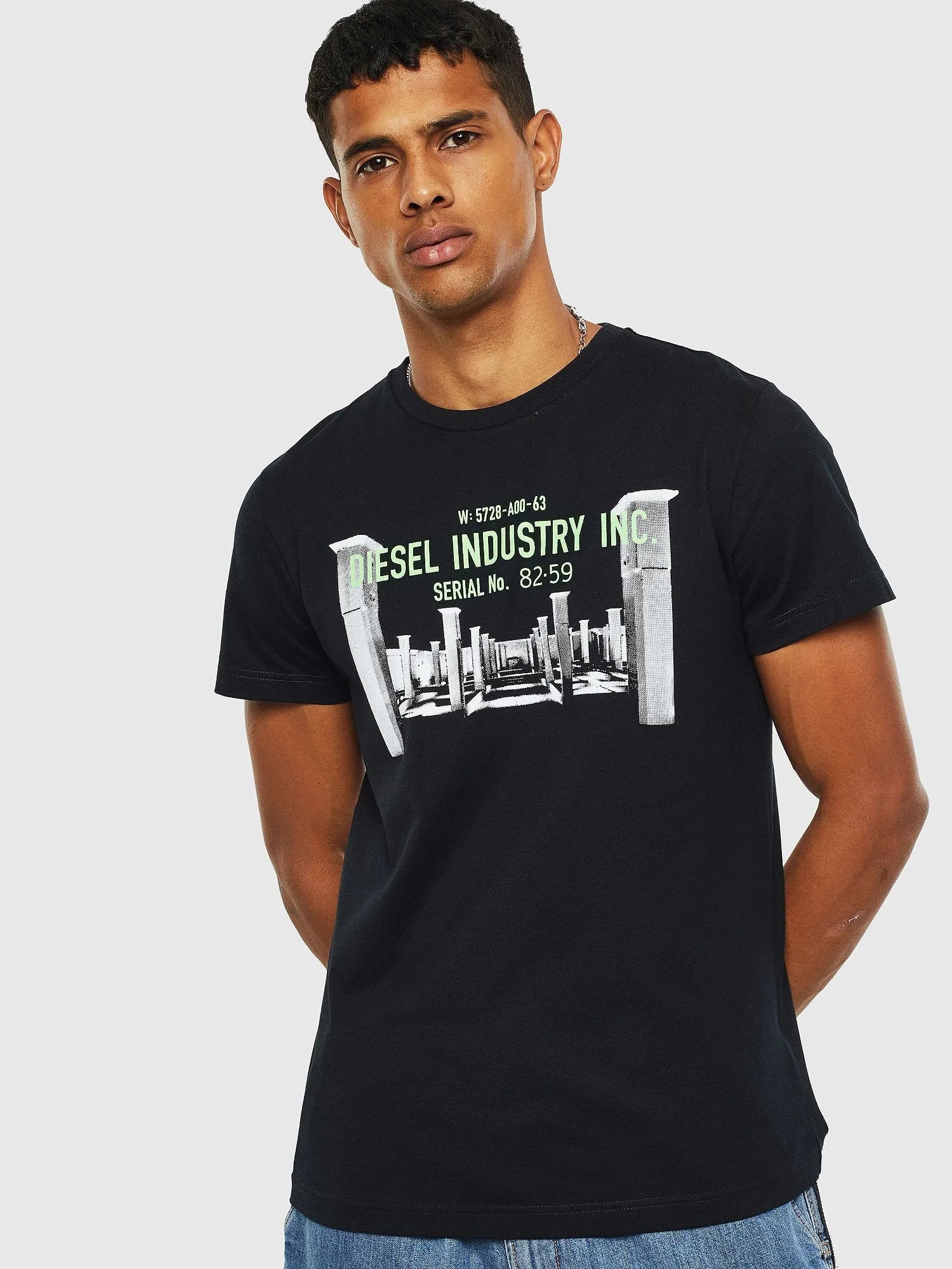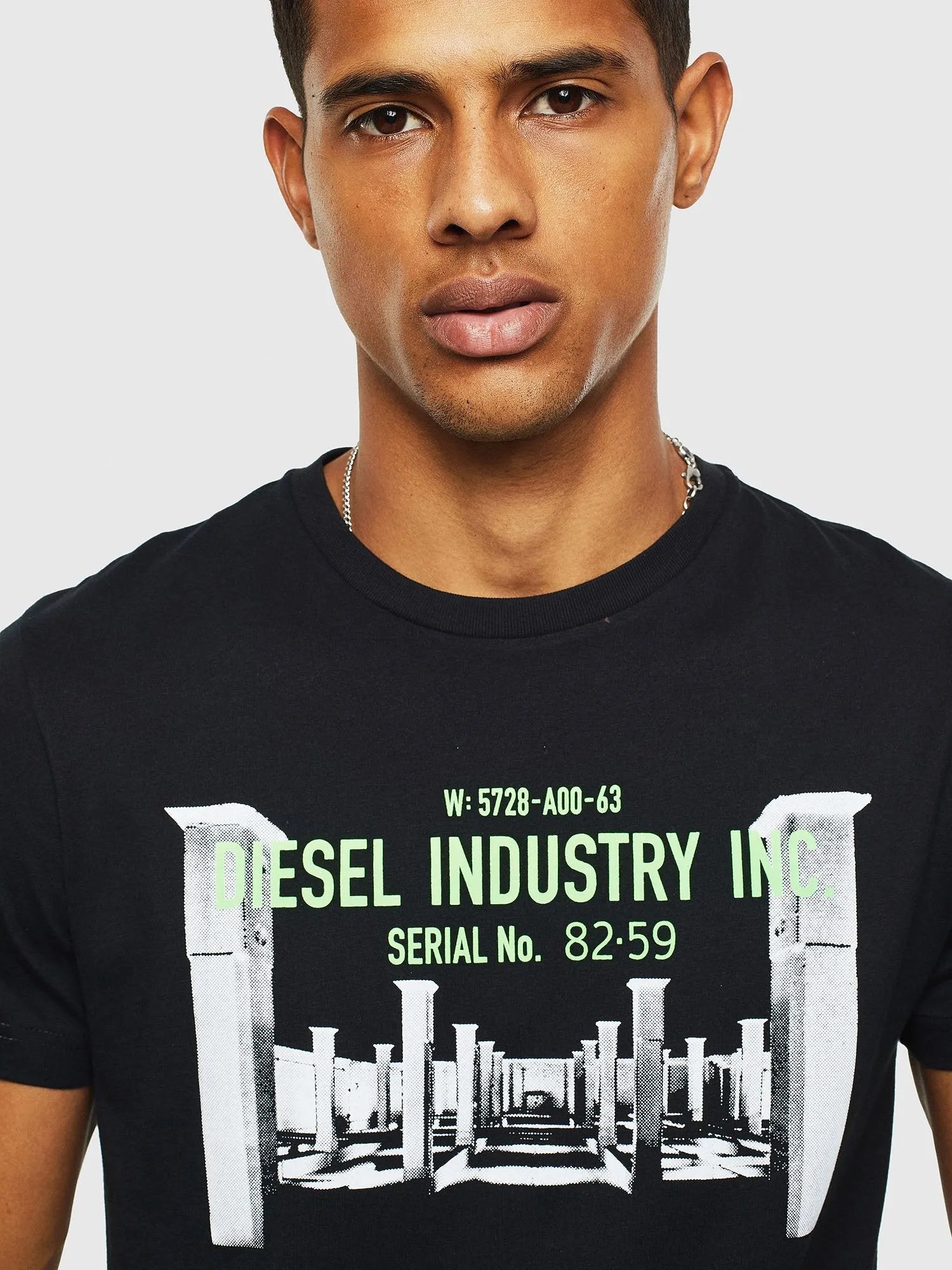 T-Shirt aus Baumwolljersey mit einfarbigem Grafikdruck und kontrastierendem Diesel Industry-Logo.