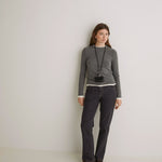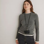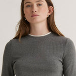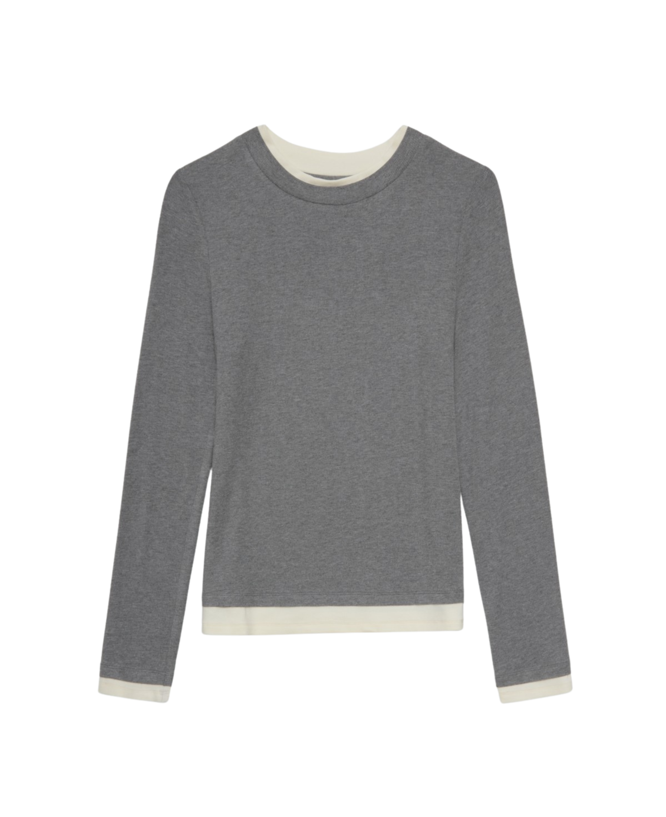 Camiseta de manga larga. Efecto doble prenda en canalé. Tejido mezcla con viscosa y lana.  Diseño liso bicolor. Regular fit. Cuello redondo.
