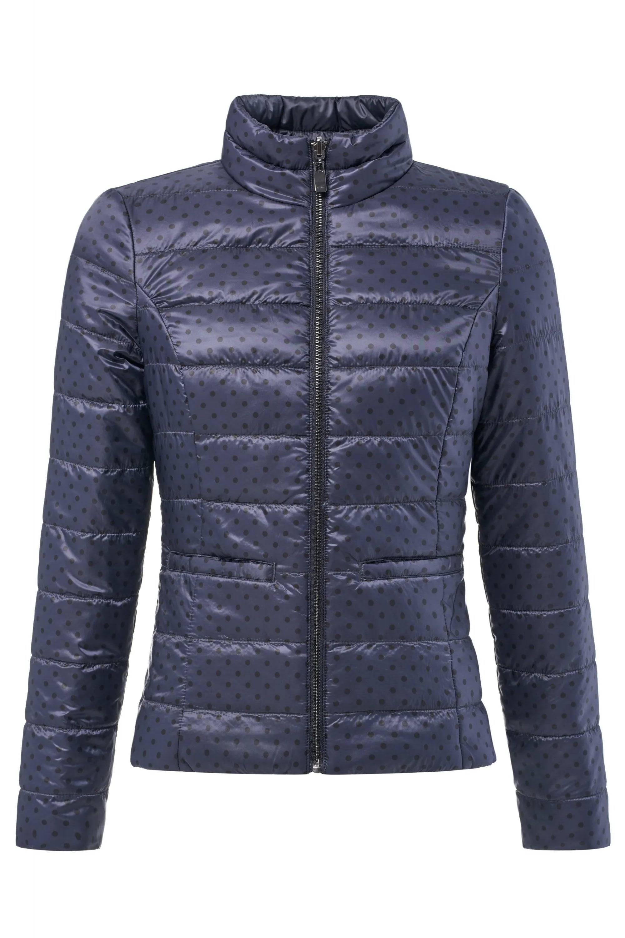 Wendbare, wattierte Jacke ohne Kapuze. Eine Seite ist einfarbig und die andere mit Tupfen bedruckt. Der Stoff, aus dem es hergestellt ist, ist Dupont™Sorona®. Dieser Stoff stammt aus erneuerbaren Quellen und ist auf Nachhaltigkeit ausgerichtet. Patentierte Technologie, überlegene Kompression und Erholung. Glatteres Gefühl. Leichte, atmungsaktive Wärme.