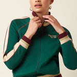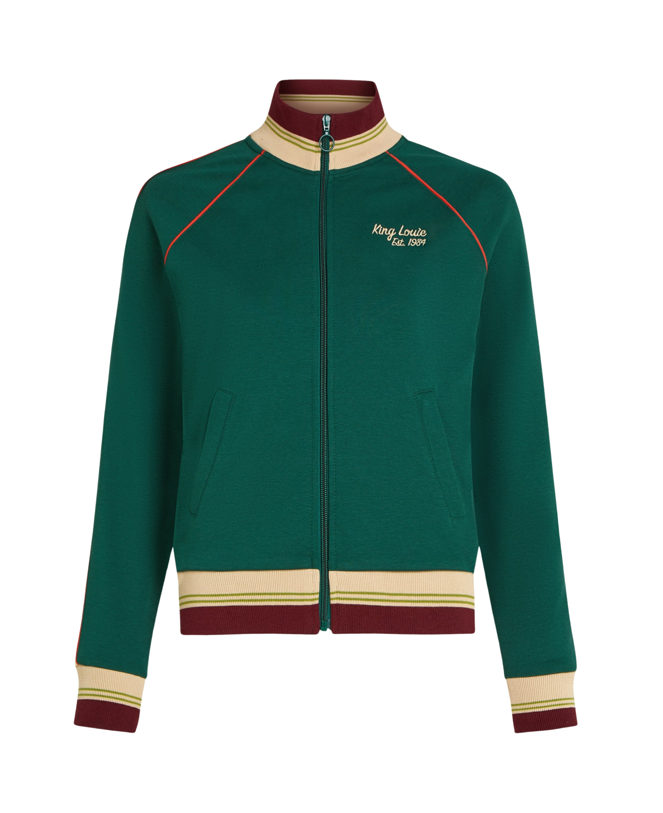 Esta sudadera Lila Coljack Daytona presenta un bordado de King Louie con cuello, puños y cintura en contraste para un look elegante. Confeccionada en algodón elástico entrelazado, ofrece comodidad y flexibilidad. Las mangas largas terminan en puños ajustados, complementados con un cuello de punto y un práctico cierre de cremallera.