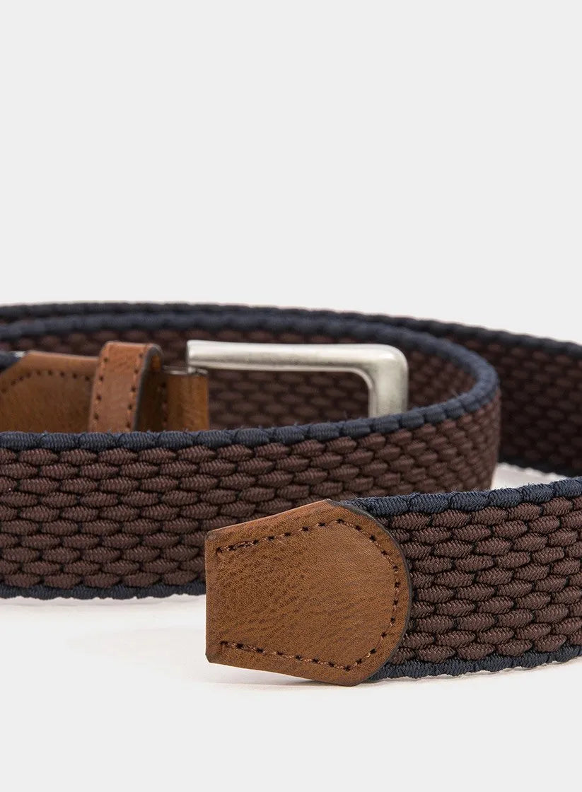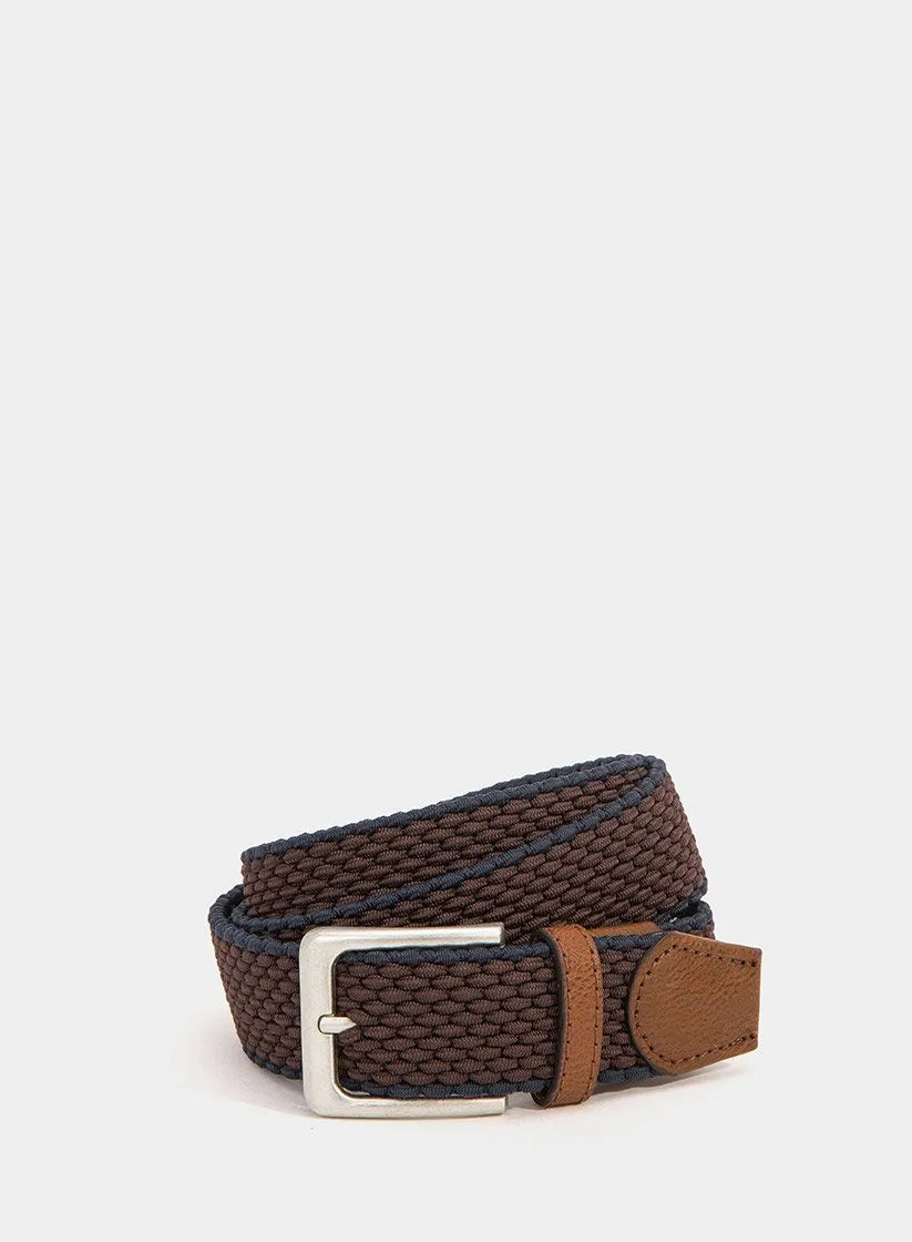 Geflochtener elastischer Gürtel mit kontrastierenden Kanten und Schnalle.