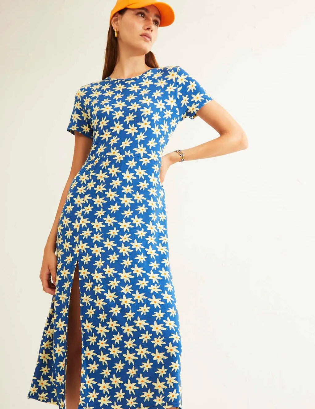 Langes Kleid mit seitlicher Öffnung von Xantik, Navy Daisy