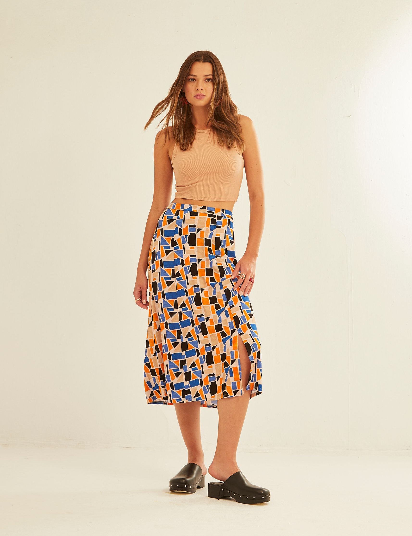 Xantik-Rock mit seitlicher Öffnung, blaues Gänseblümchen