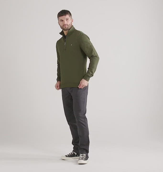 Sweatshirt mit Viertelreißverschluss aus Bio-Baumwolle Dunkeloliv