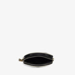 Tejido de poliéster reciclado / Detalles metálicos de color plateado / Bolsillo interior con cremallera / Correas tejidas ajustables con el ribete con dos franjas para llevar el complemento cruzado / Logotipo de la corona de laurel repujado en tono dorado metalizado en la parte delantera