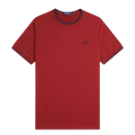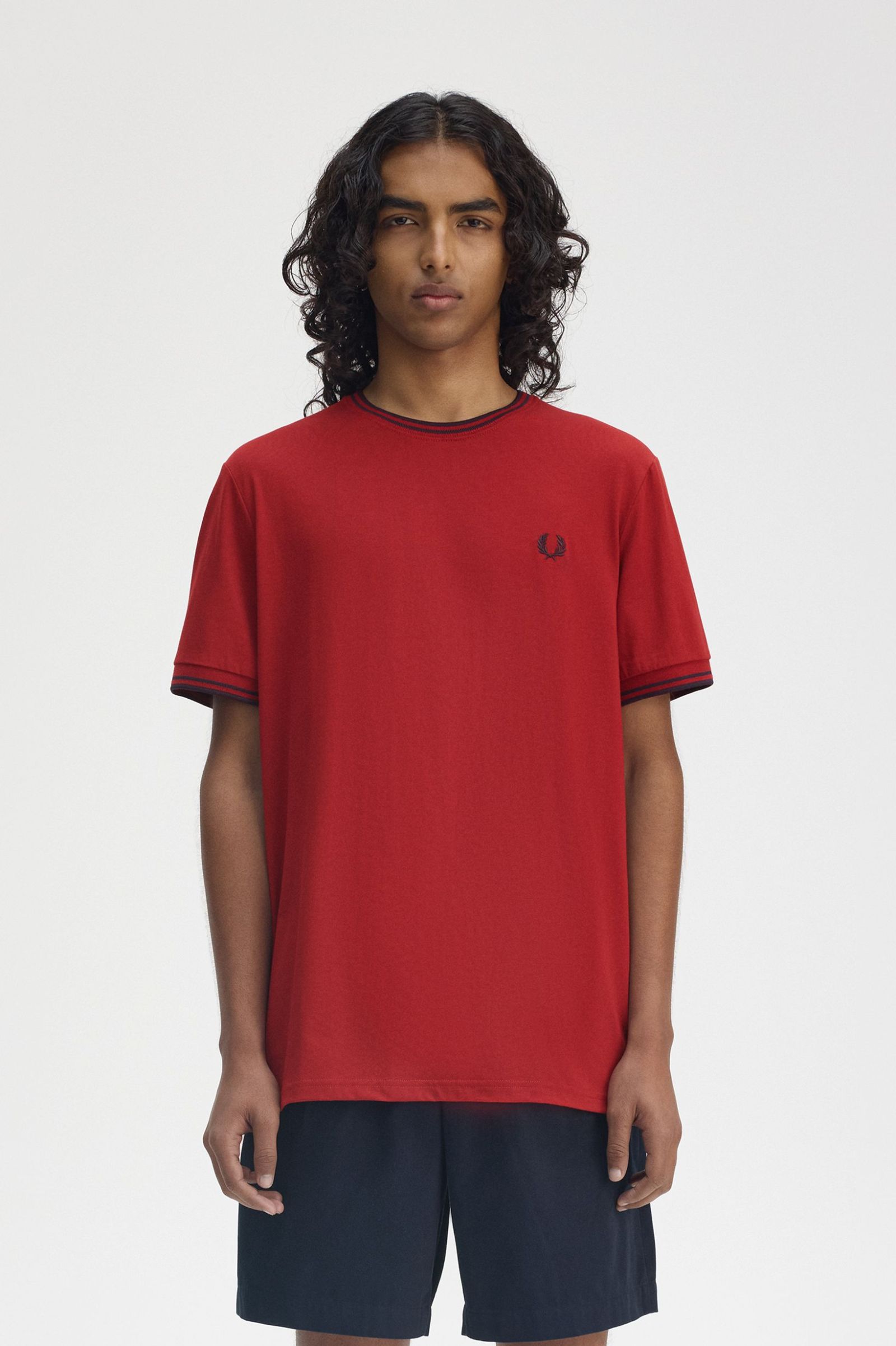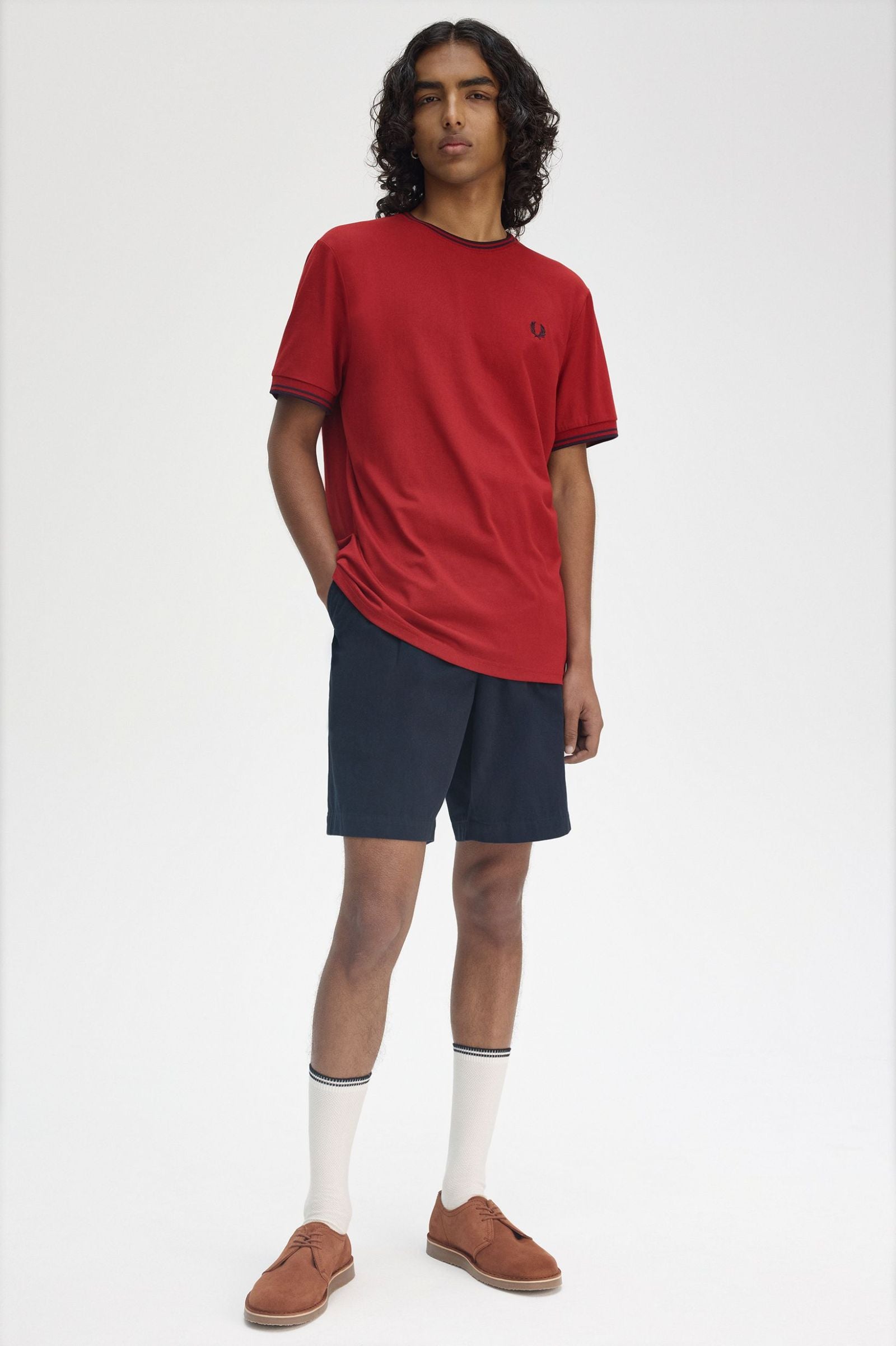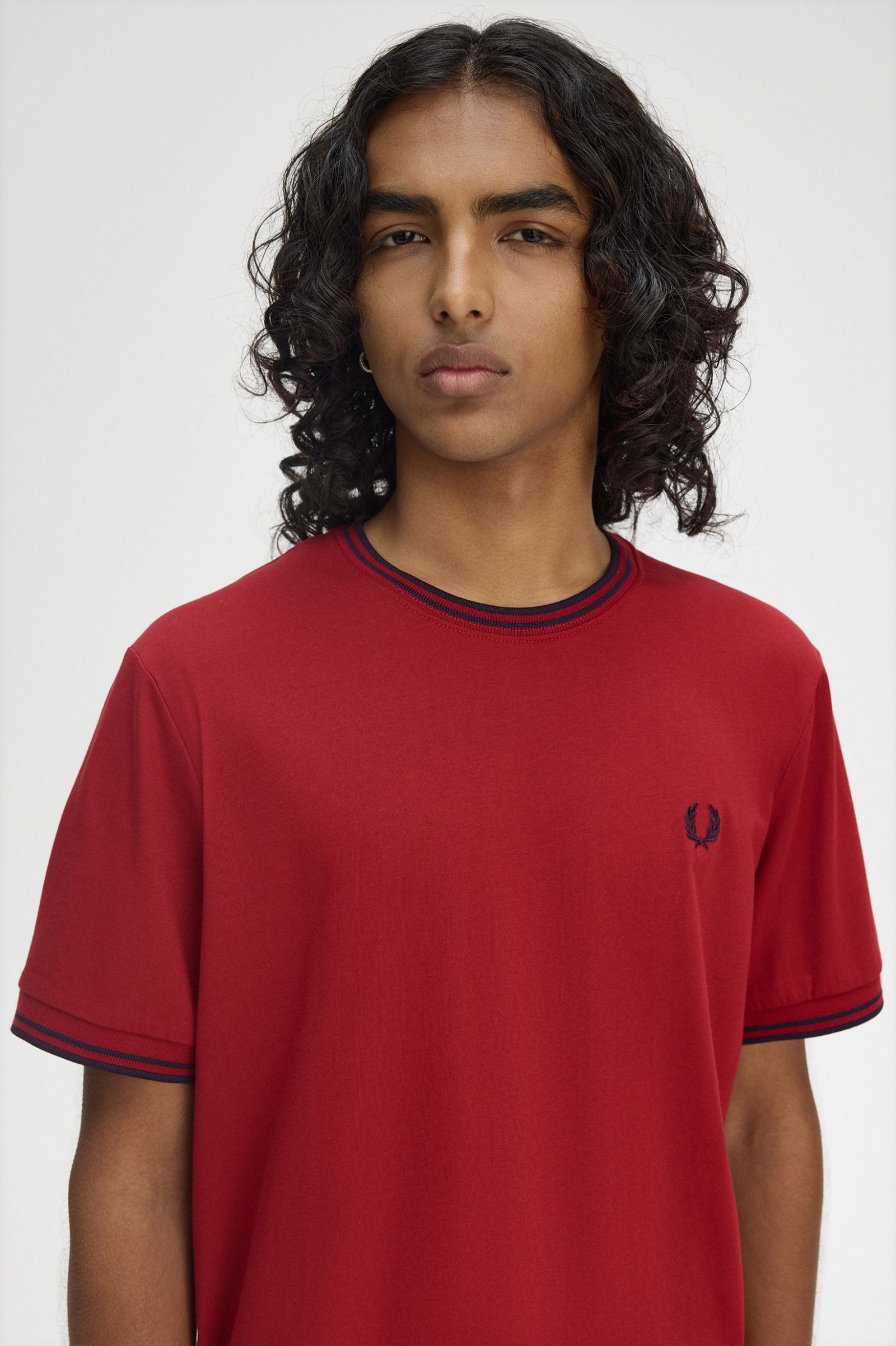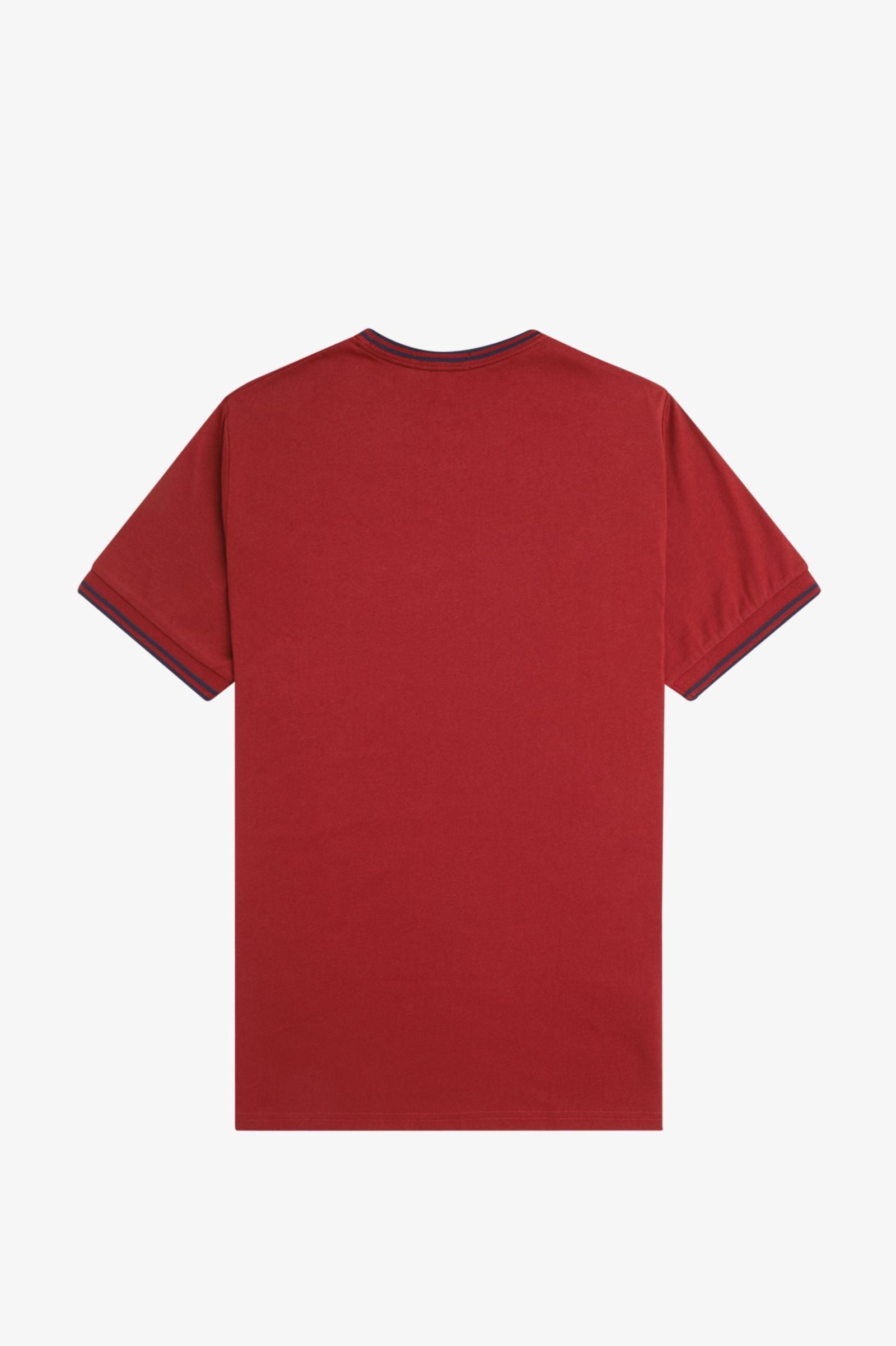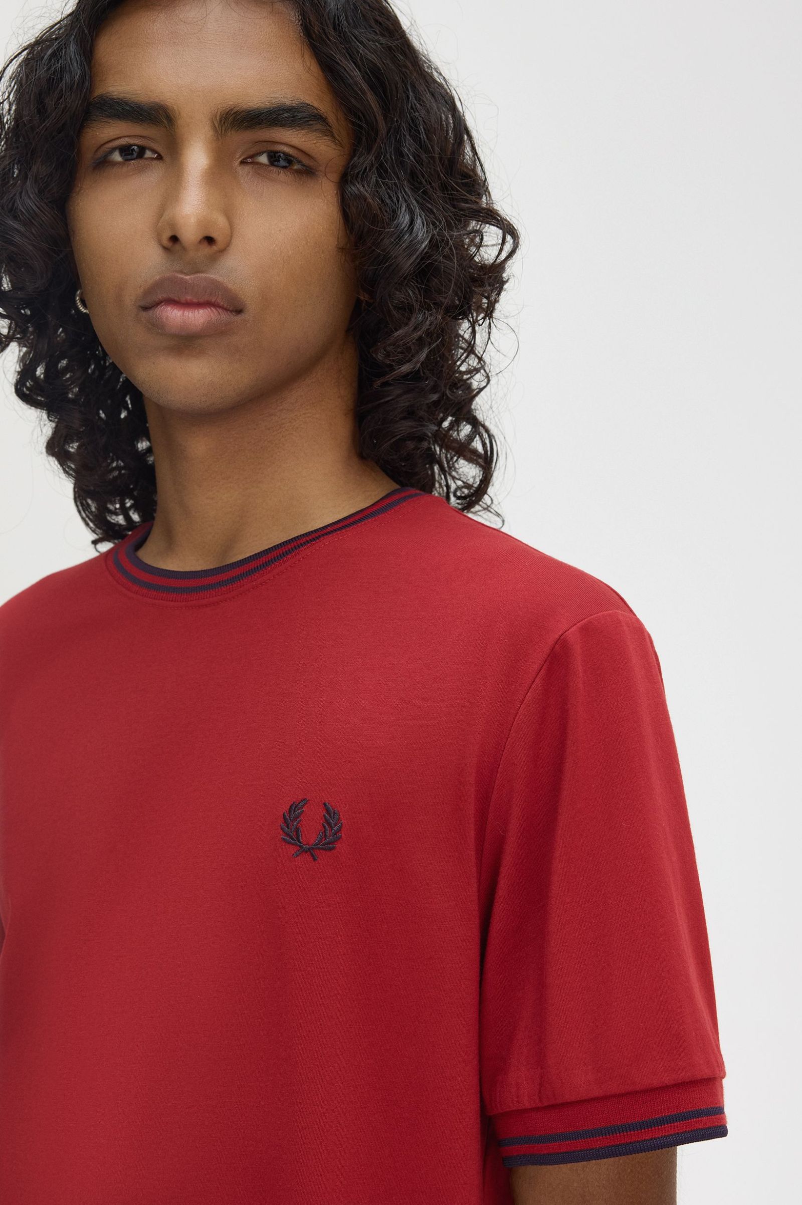 FRED PERRY – T-Shirt mit Doppelstreifen in Hellbraun/Marineblau