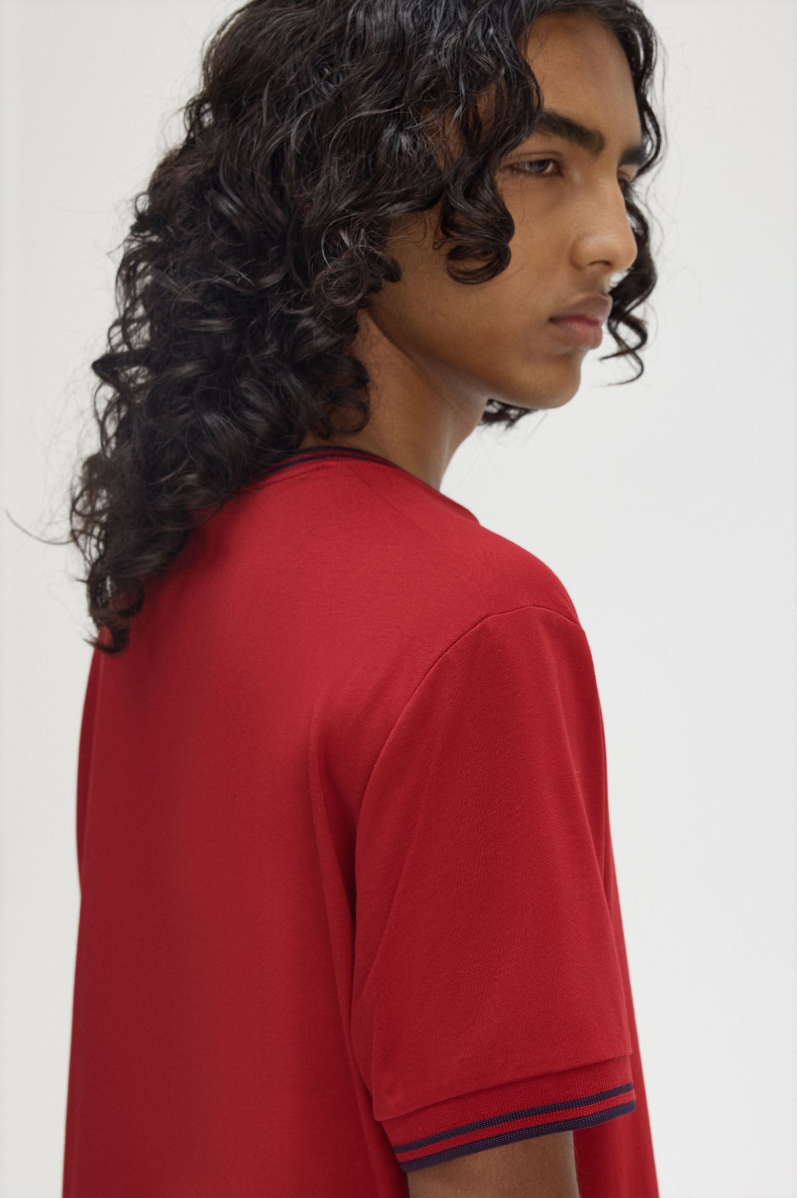 Ein schlichtes, klassisch geschnittenes T-Shirt mit markanten Details. Der Zwei-Streifen-Besatz hält unser Erbe lebendig.