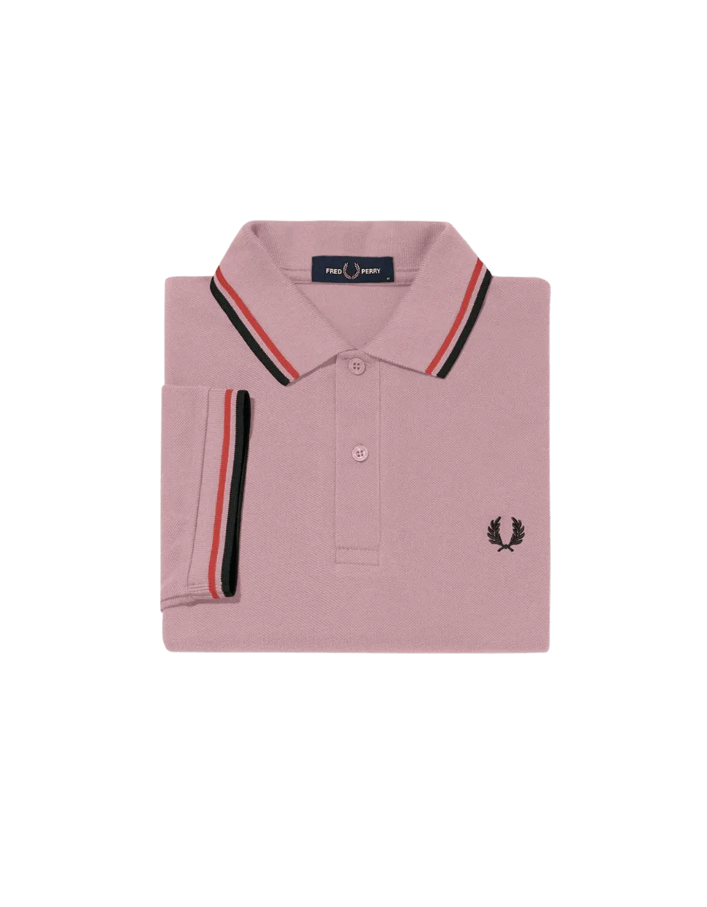 Fred Perry M3600 Poloshirt Kreiderosa verwaschenes Rot Schwarz