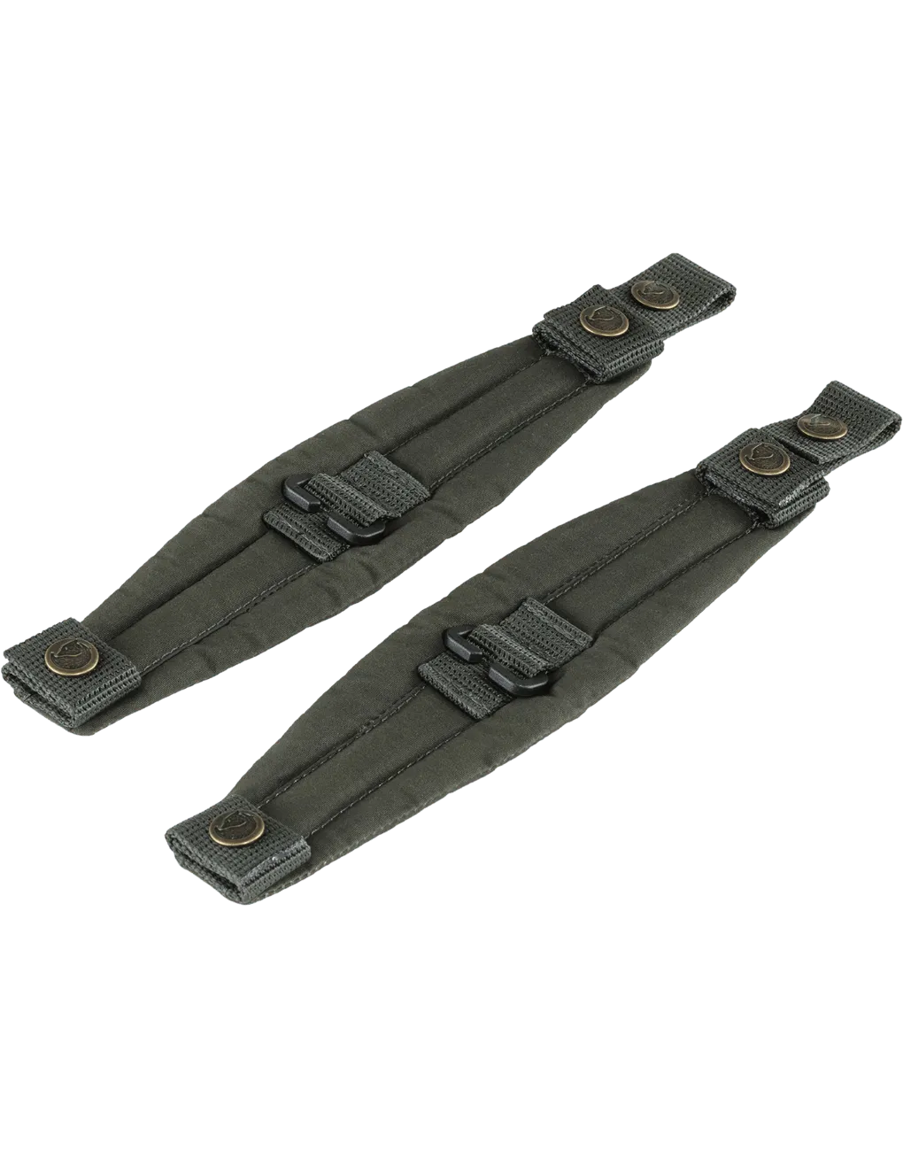 Zusätzliche Polsterung für die 25 mm breiten Schultergurte des Kånken für bequemeres Tragen schwerer Lasten. Befestigung mit Druckknöpfen und einem Clip in der Mitte, der die Träger in Position hält.