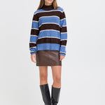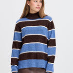 Jersey de punto para mujer con corte holgado, cuello alto y mangas largas. Su tejido suave garantiza la comodidad. Su longitud versátil y su silueta moderna crean un estilo desenfadado ideal para el día a día o para combinar con otras prendas.