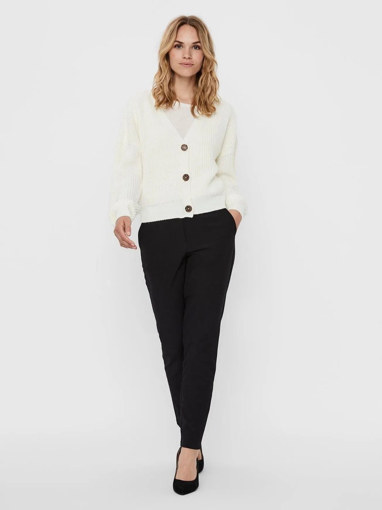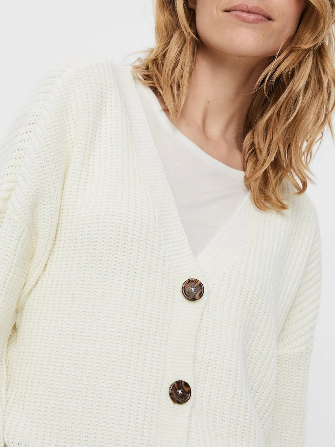 - V-Ausschnitt mit Knopfverschluss.