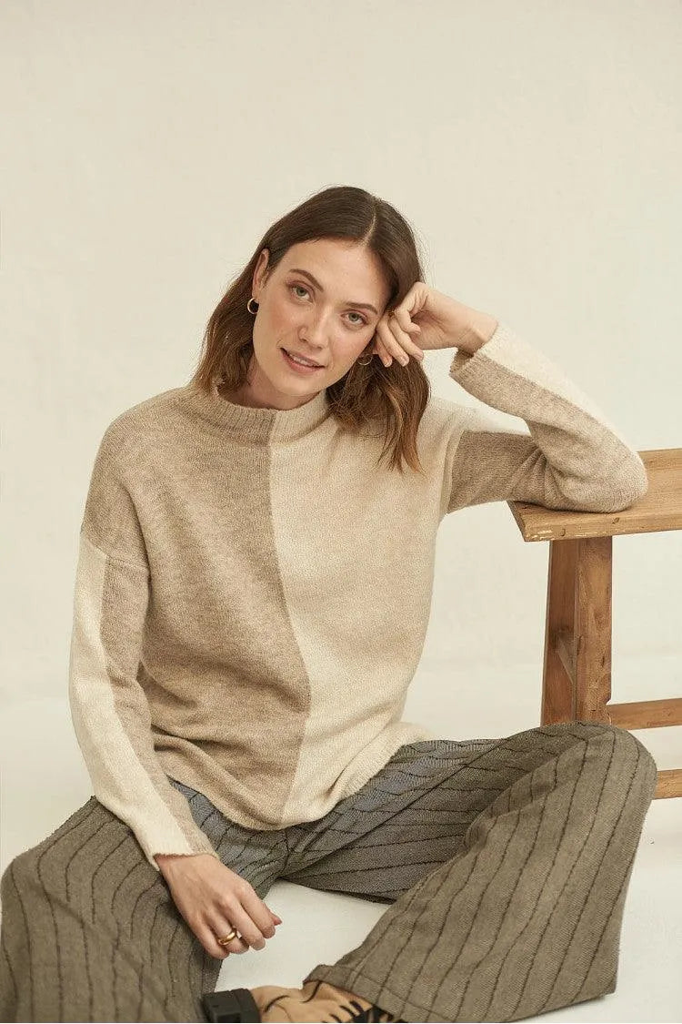 Zweifarbiges Detail am Körper und an den Ärmeln.
