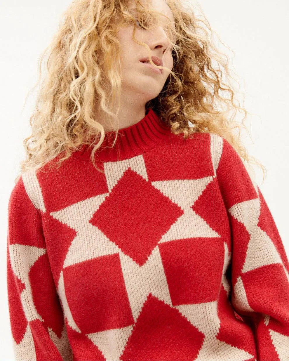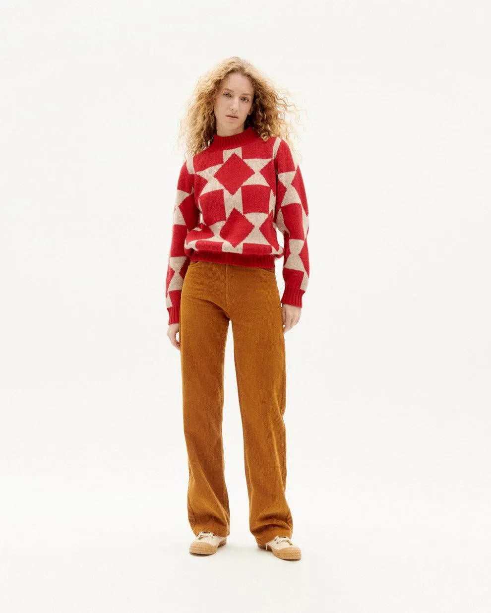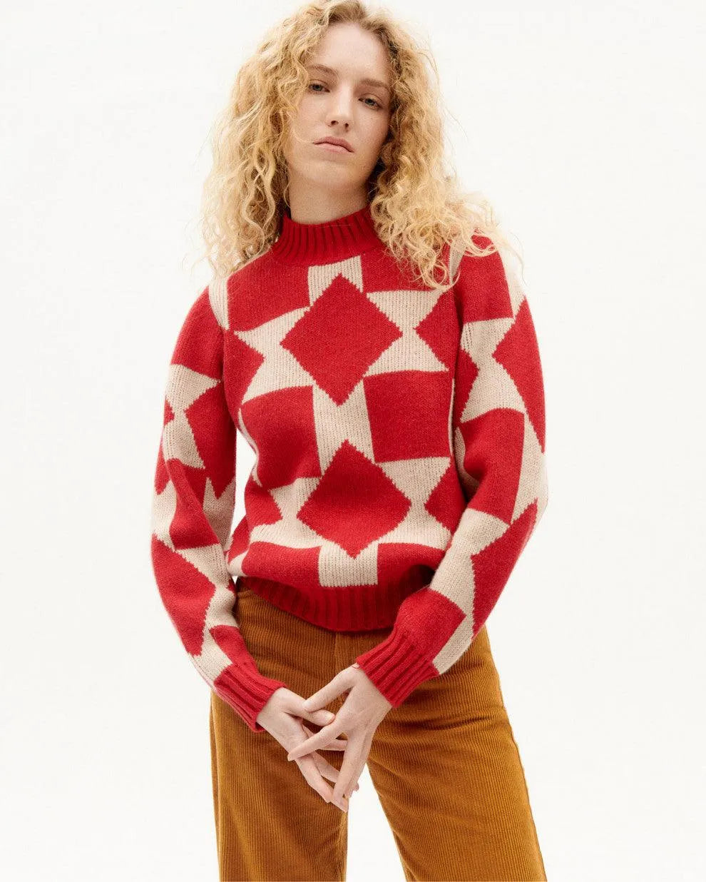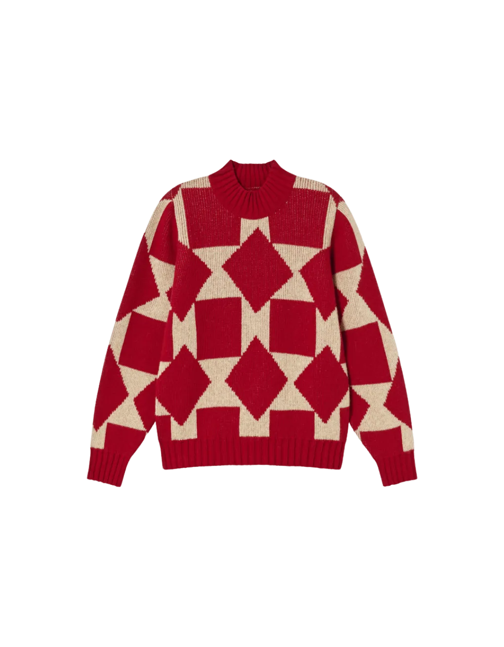Jacquard-Pullover mit Rundhalsausschnitt. Gerippter Saum und Bündchen. Hergestellt in Barcelona aus 100 % extrafeiner Wolle.