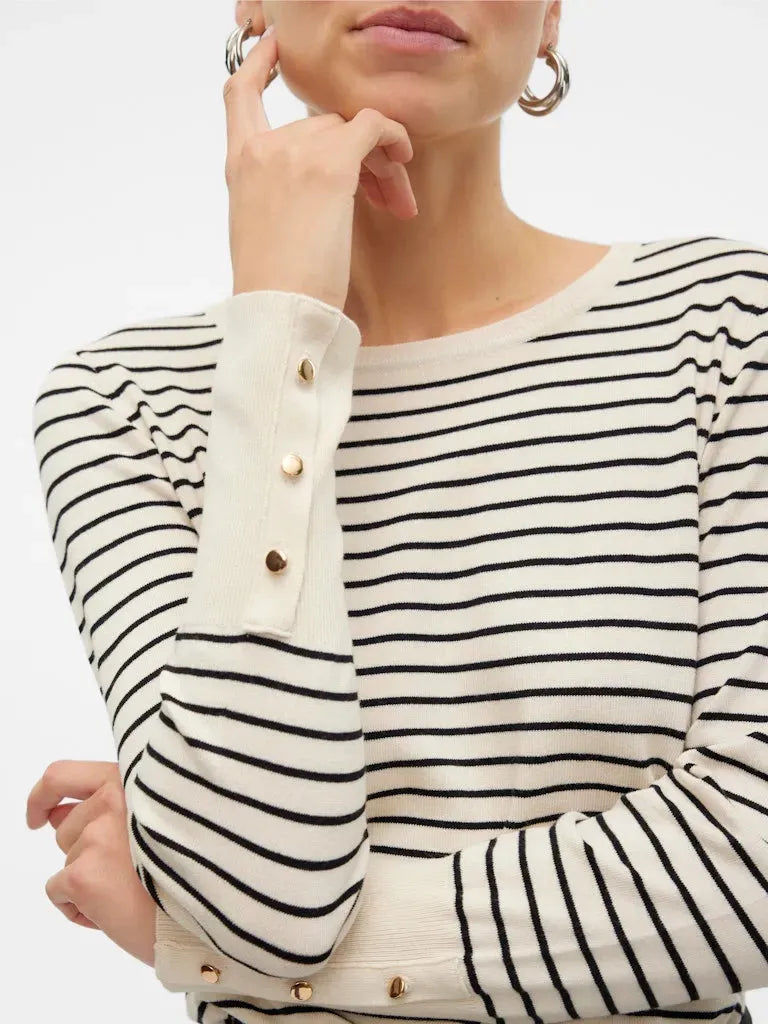 Suchen Sie ein Basic-Kleidungsstück, mit dem Sie zu jeder Jahreszeit einen bequemen und warmen Look erzielen? Wenn Sie uns fragen, ist ein Strickoberteil das ideale Teil für jede Jahreszeit! Finden Sie das Modell, das am besten zu Ihrem Stil passt, und kombinieren Sie es mit einer guten Jeans. Pssst... denken Sie daran, das richtige Schuhwerk für die Saison auszuwählen und machen Sie sich bereit, im Mittelpunkt der Aufmerksamkeit zu stehen... - Artikel: Strickpullover - Hals: Rundhalsausschnitt - Ärmel: Langarm - Manschetten: Hohe Manschetten - Details: Knopfdetail - Schnitt: Normaler Schnitt