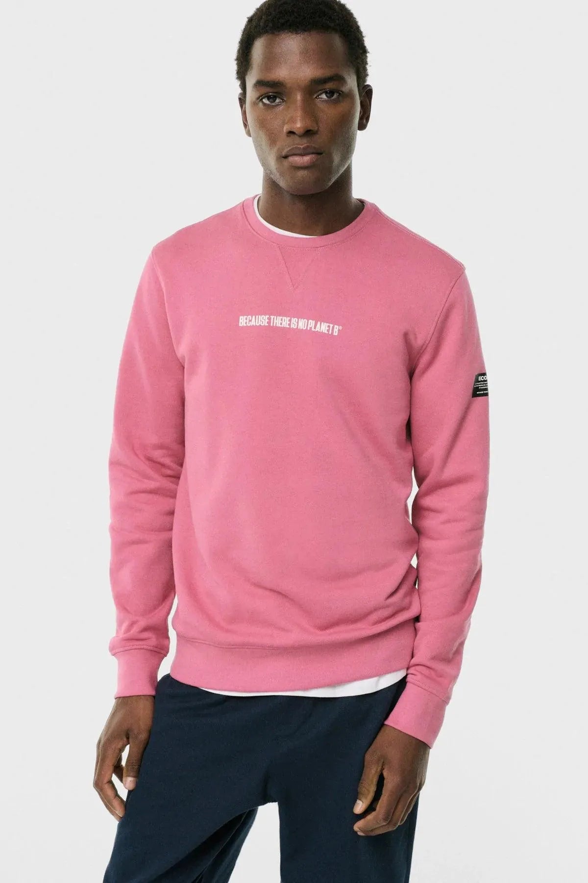 Das Disa-Sweatshirt besteht aus Bio- und recycelter Baumwolle, Materialien, mit denen wir Textilabfällen ein zweites Leben geben und gleichzeitig erhebliche Einsparungen beim Verbrauch von Wasser und anderen natürlichen Ressourcen erzielen. Auf der Brust ist der Satz „Because there is no planet B“ aufgedruckt.