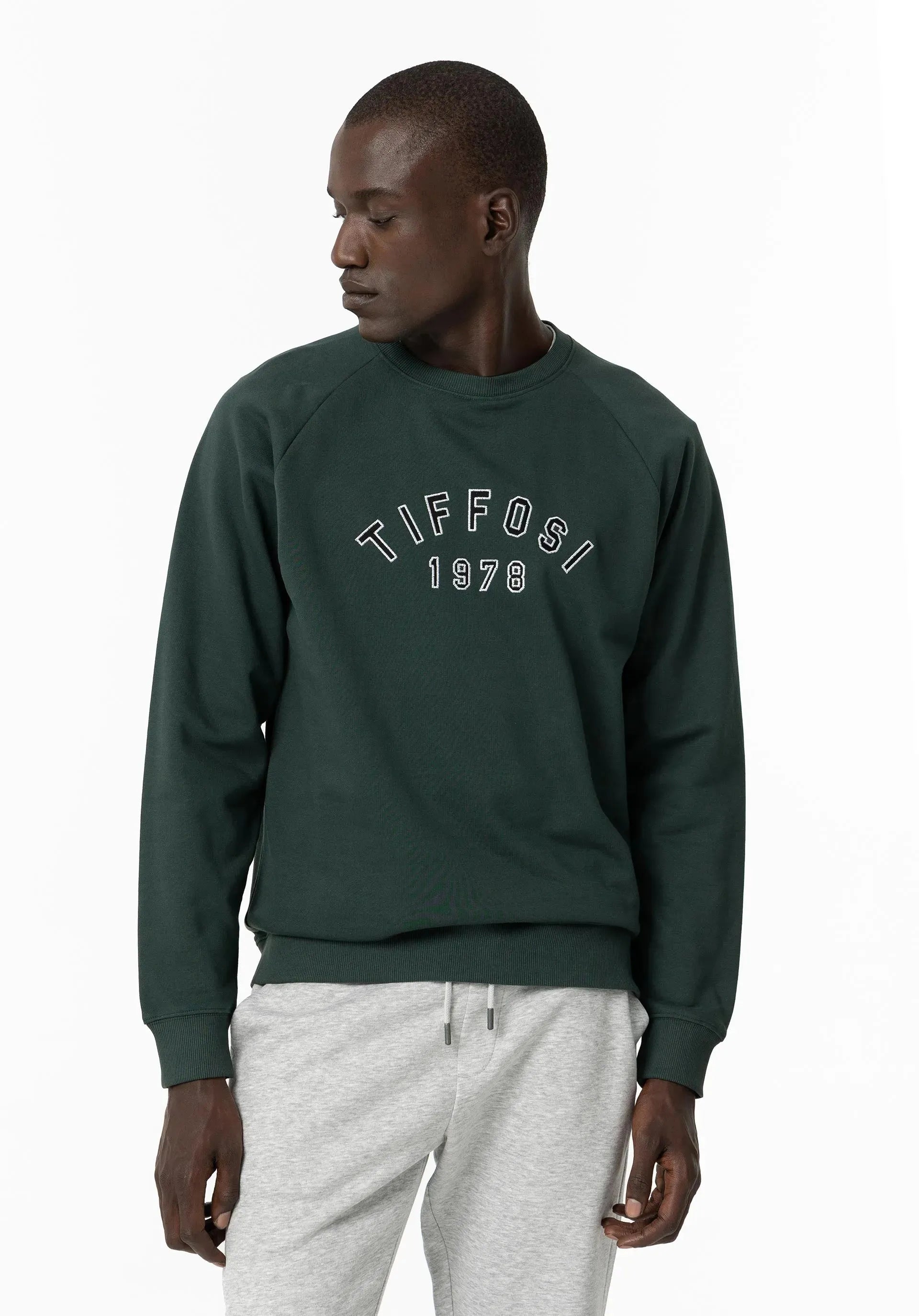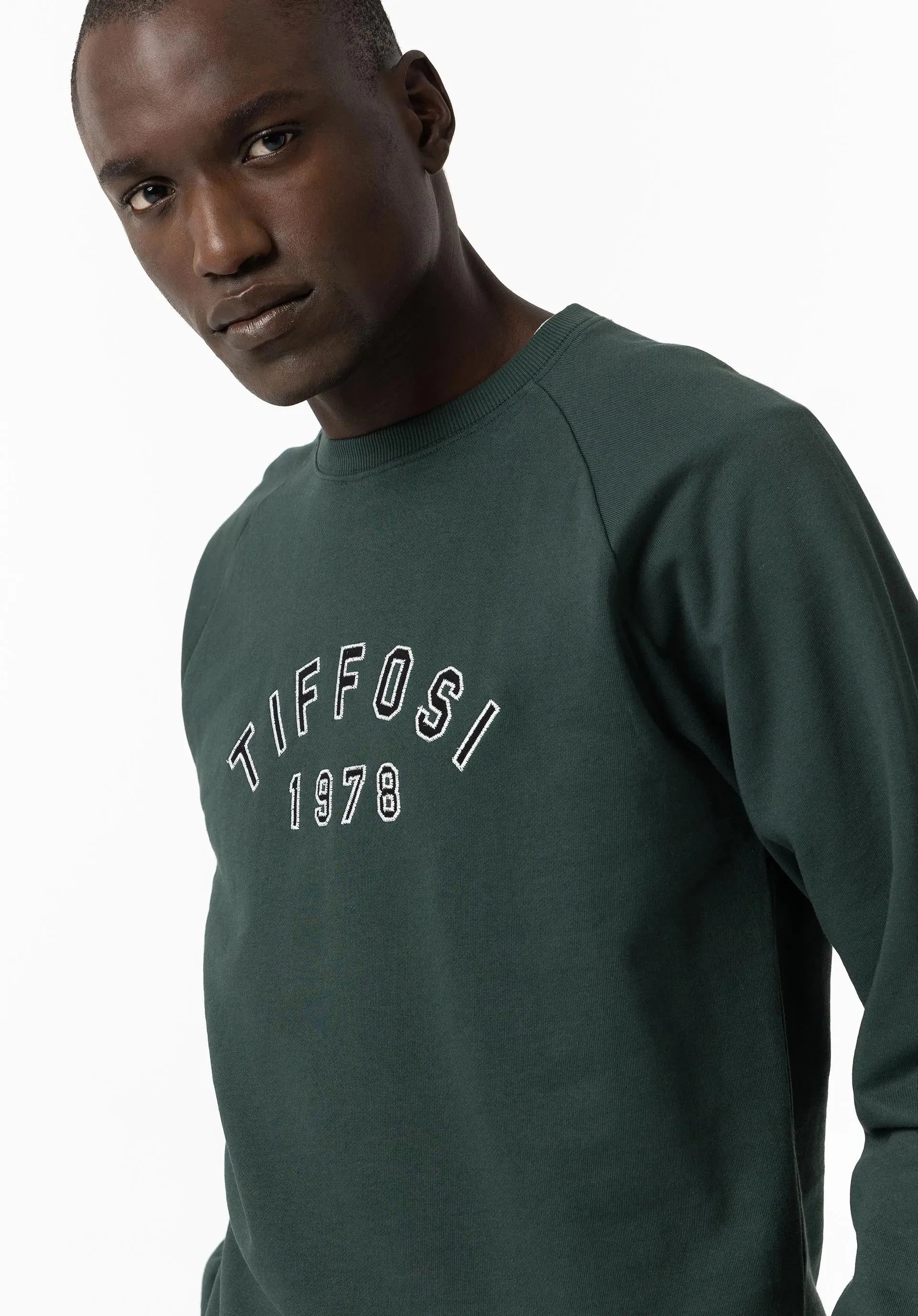 Kardiertes Sweatshirt mit Rundhalsausschnitt und langen Ärmeln. Stickerei vorne. Gerippte Abschlüsse.