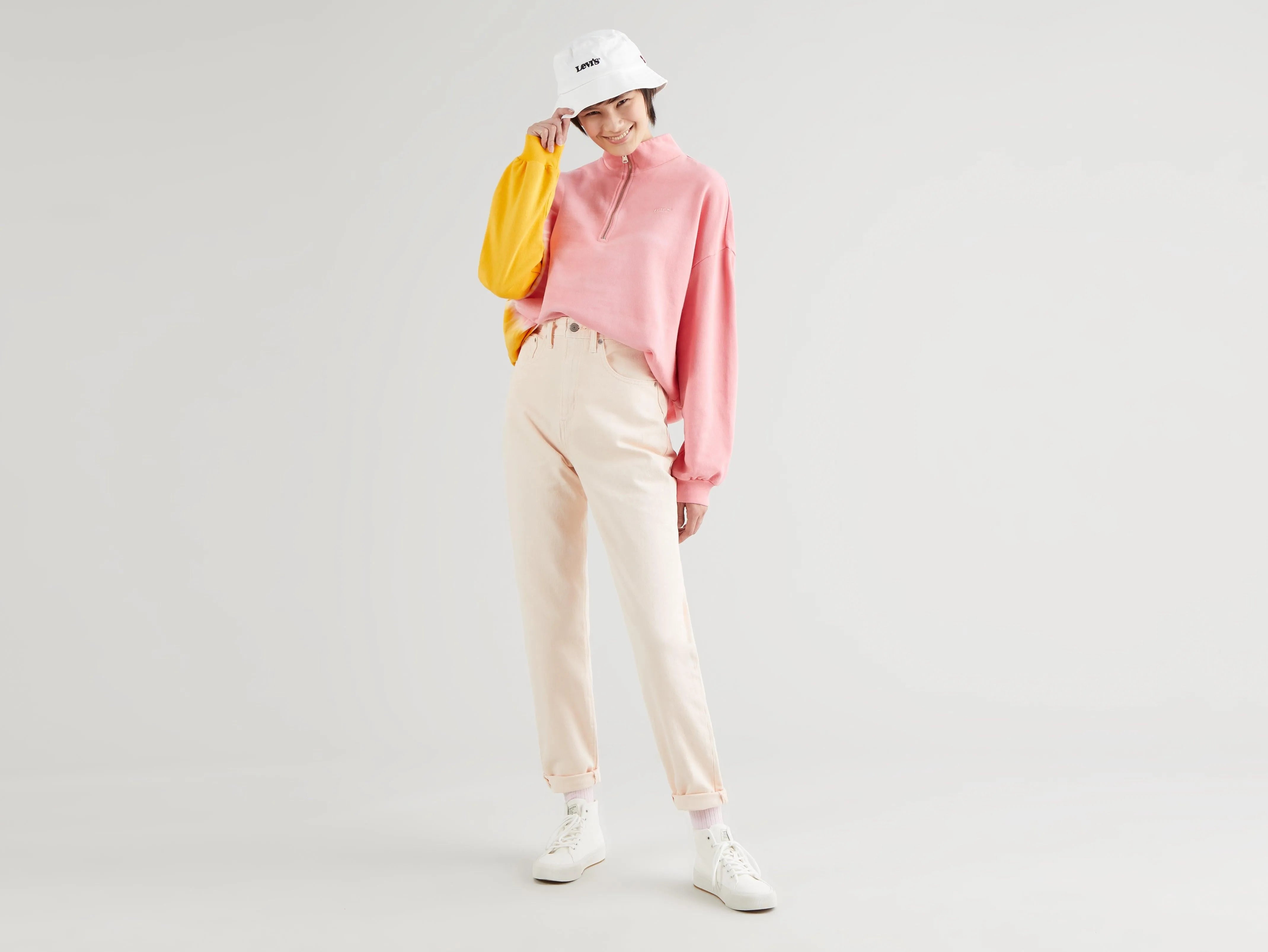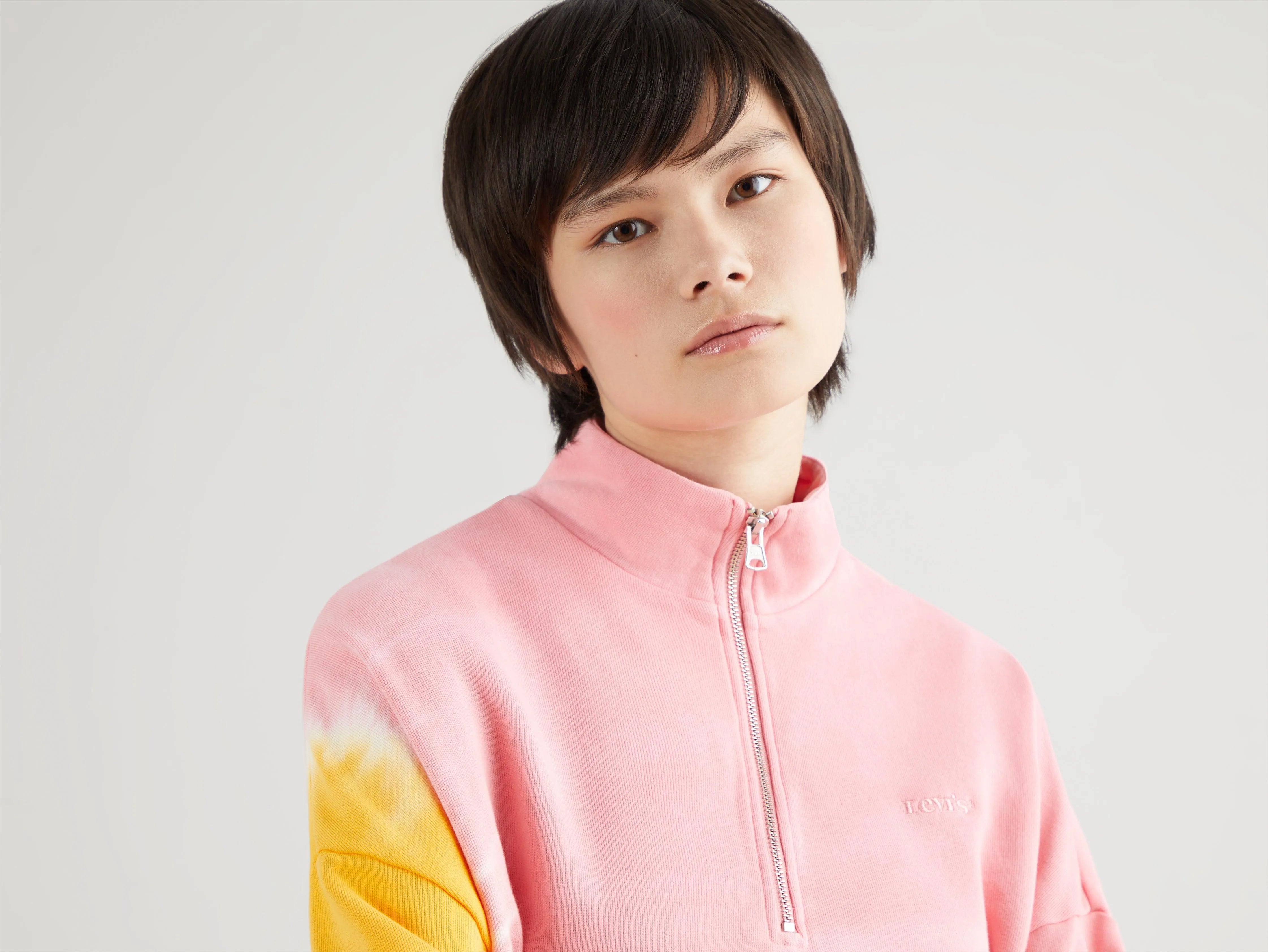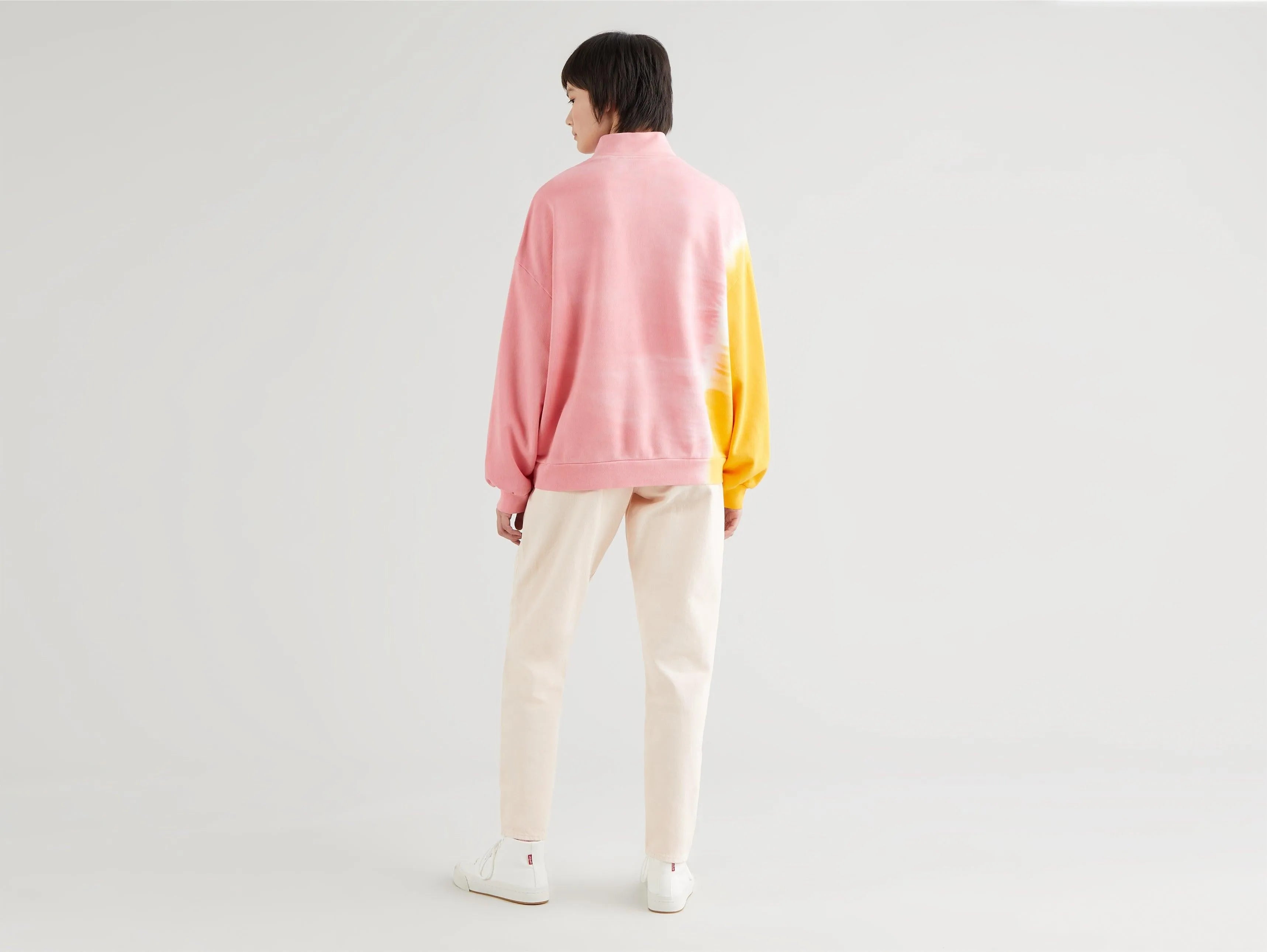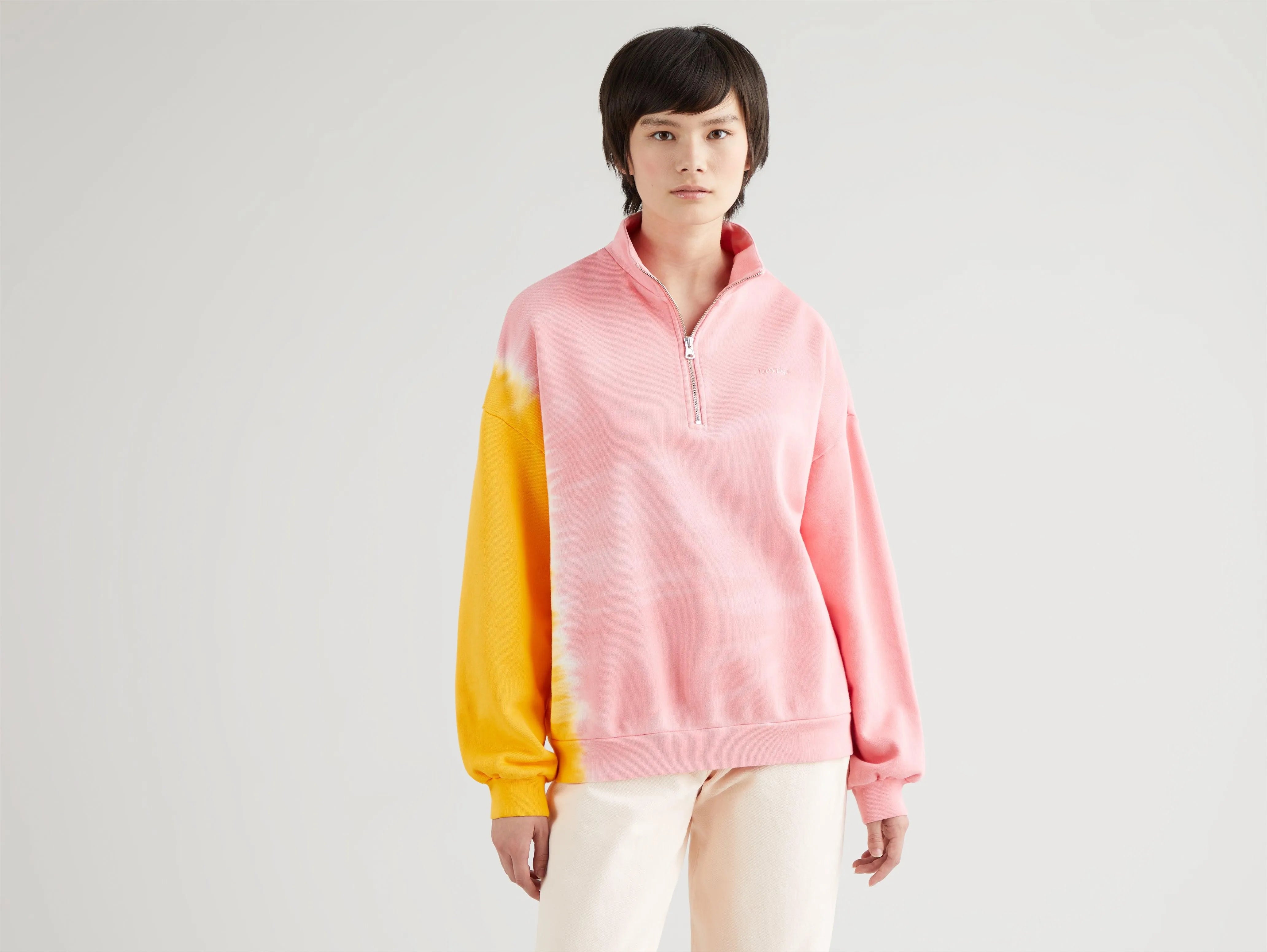 Dieses Vintage-inspirierte Sweatshirt hat eine entspannte Passform und ein lustiges Batikmuster. Es verfügt auch über eine einfache Öffnung mit Viertelreißverschluss.