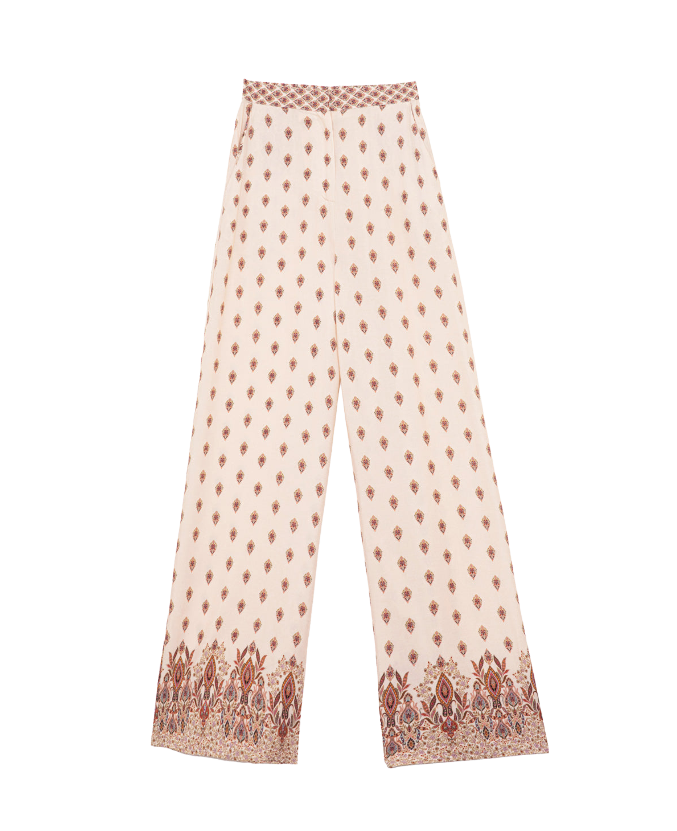 Die Hose Polia aus 100 % Viskose vereint dank ihres geraden Schnitts und des Bohème-Prints Komfort und Eleganz. Die hohe Taille, der elastische Bund hinten und die Eingrifftaschen machen sie praktisch und feminin und werten Ihre Alltagsoutfits perfekt auf.