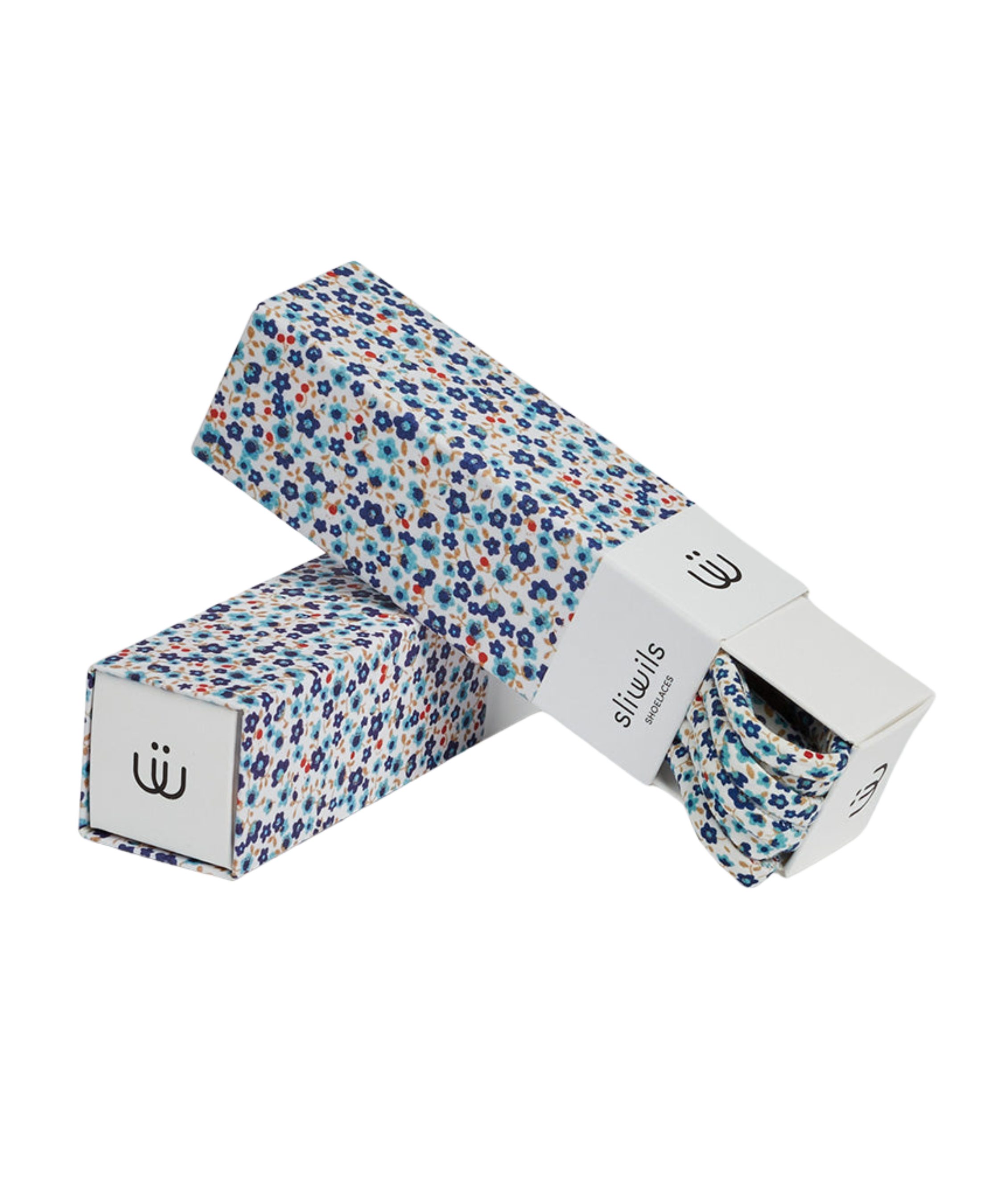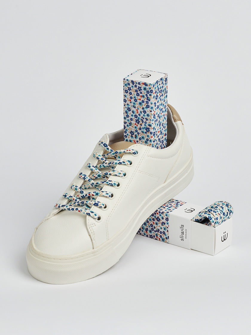 Los cordones Estampado Flores Azules de Sliwils aportan un toque fresco y femenino a tus zapatillas gracias a su patrón floral en tonos azules. Fabricados con técnica de corte al bies en España, combinan resistencia y estilo para que puedas personalizar tu look de forma sencilla pero con carácter.