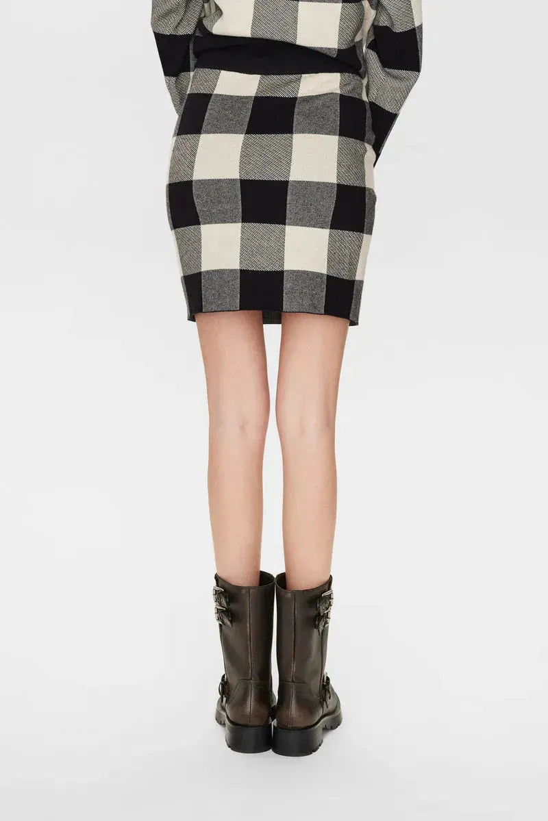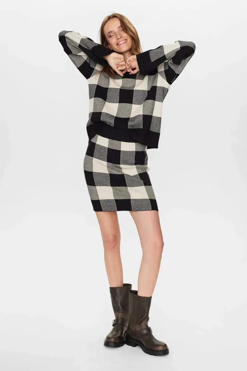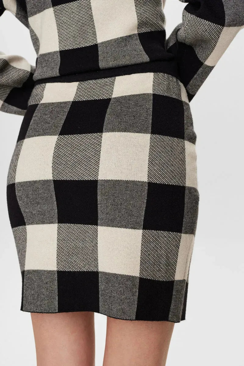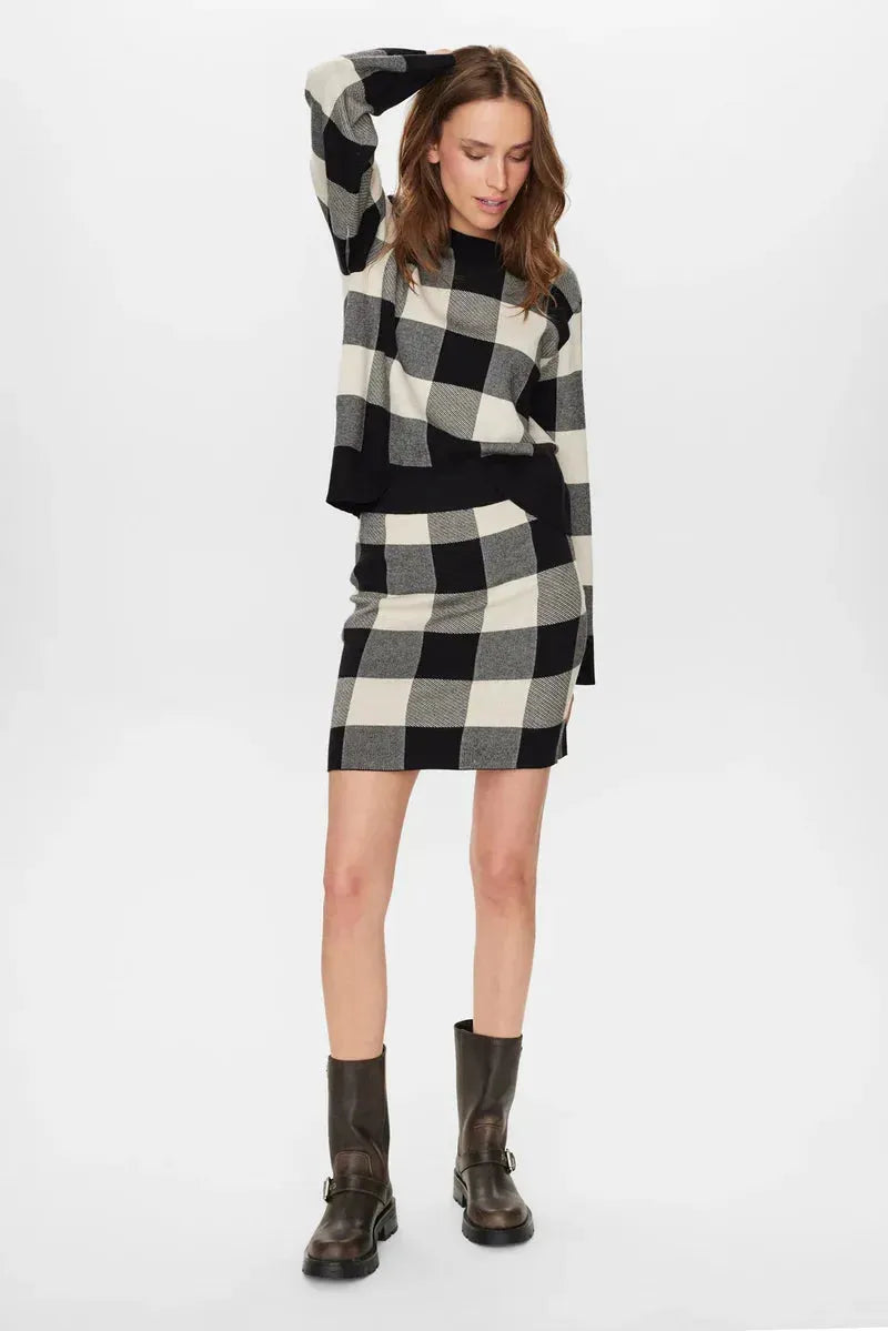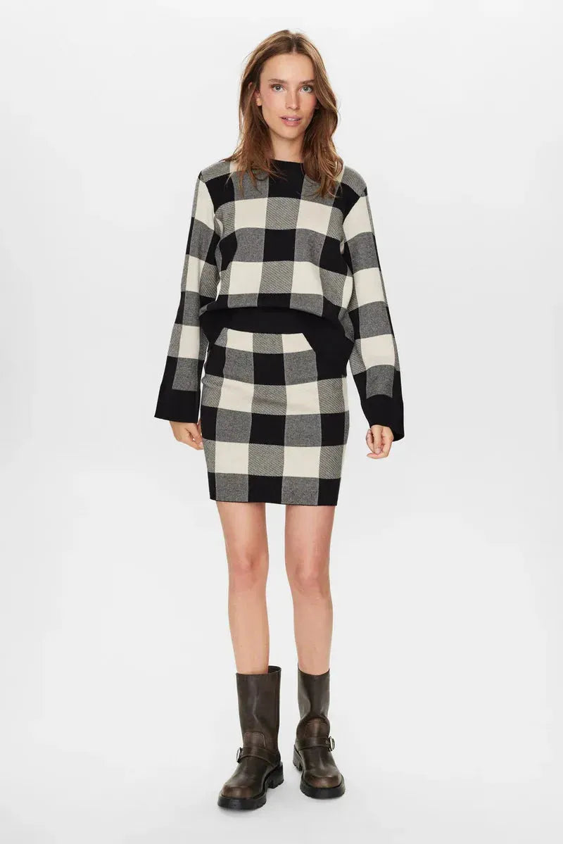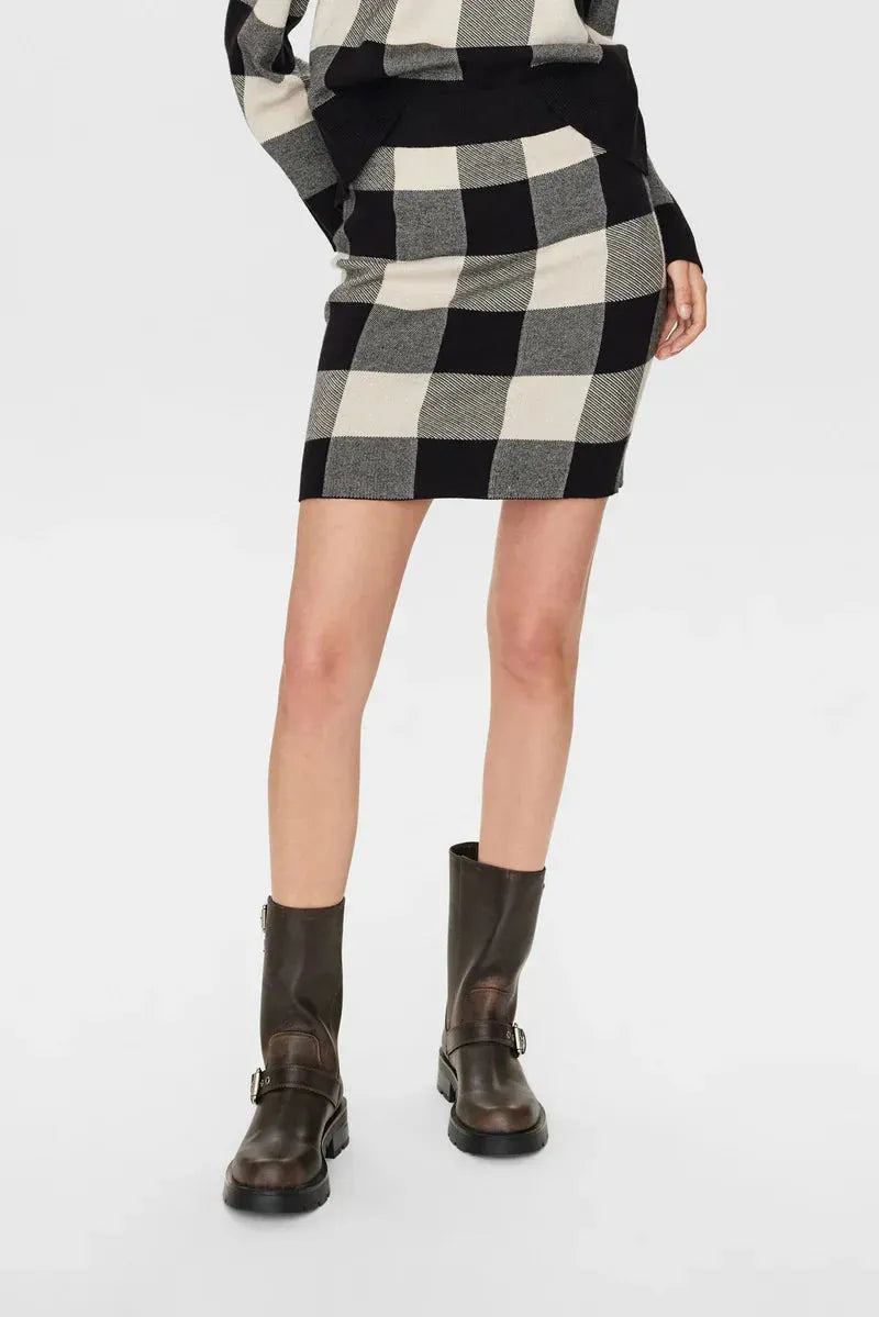Schwarzer Gingham-Strick-Minirock der Marke Nümph.
