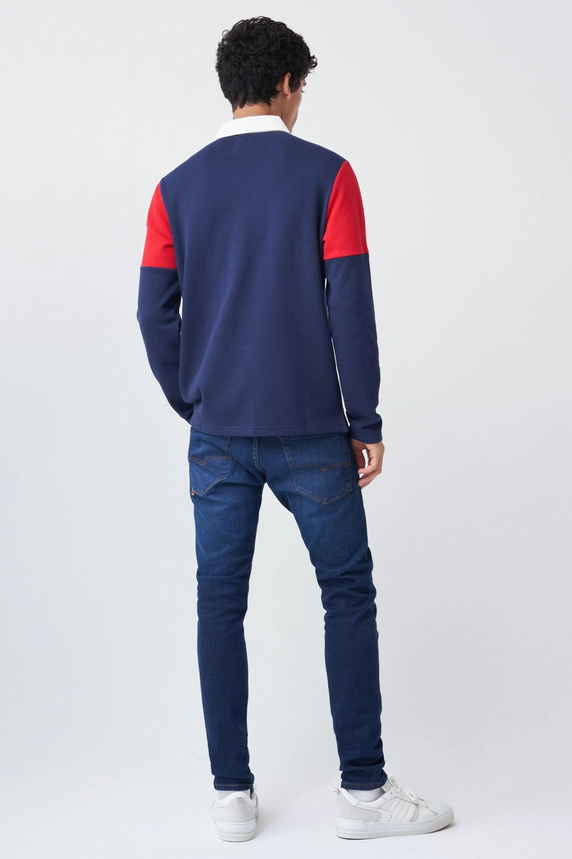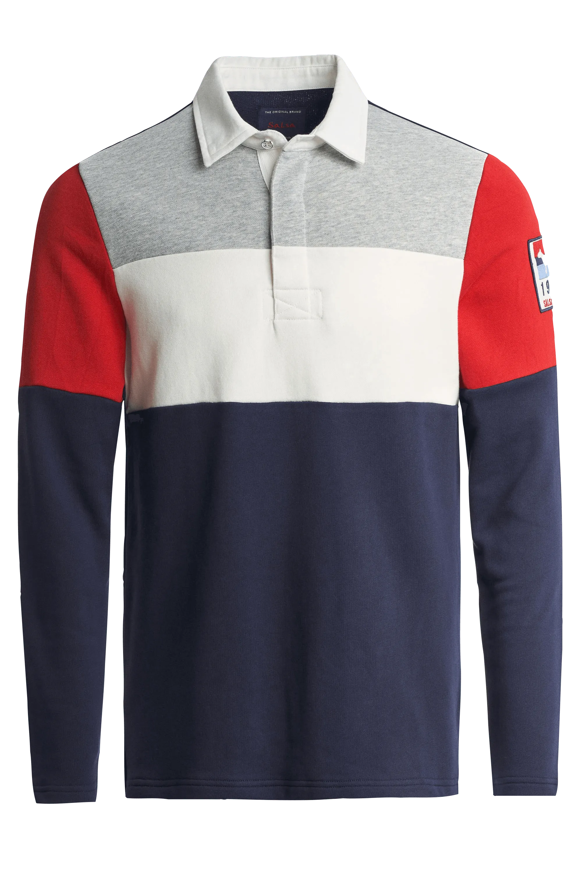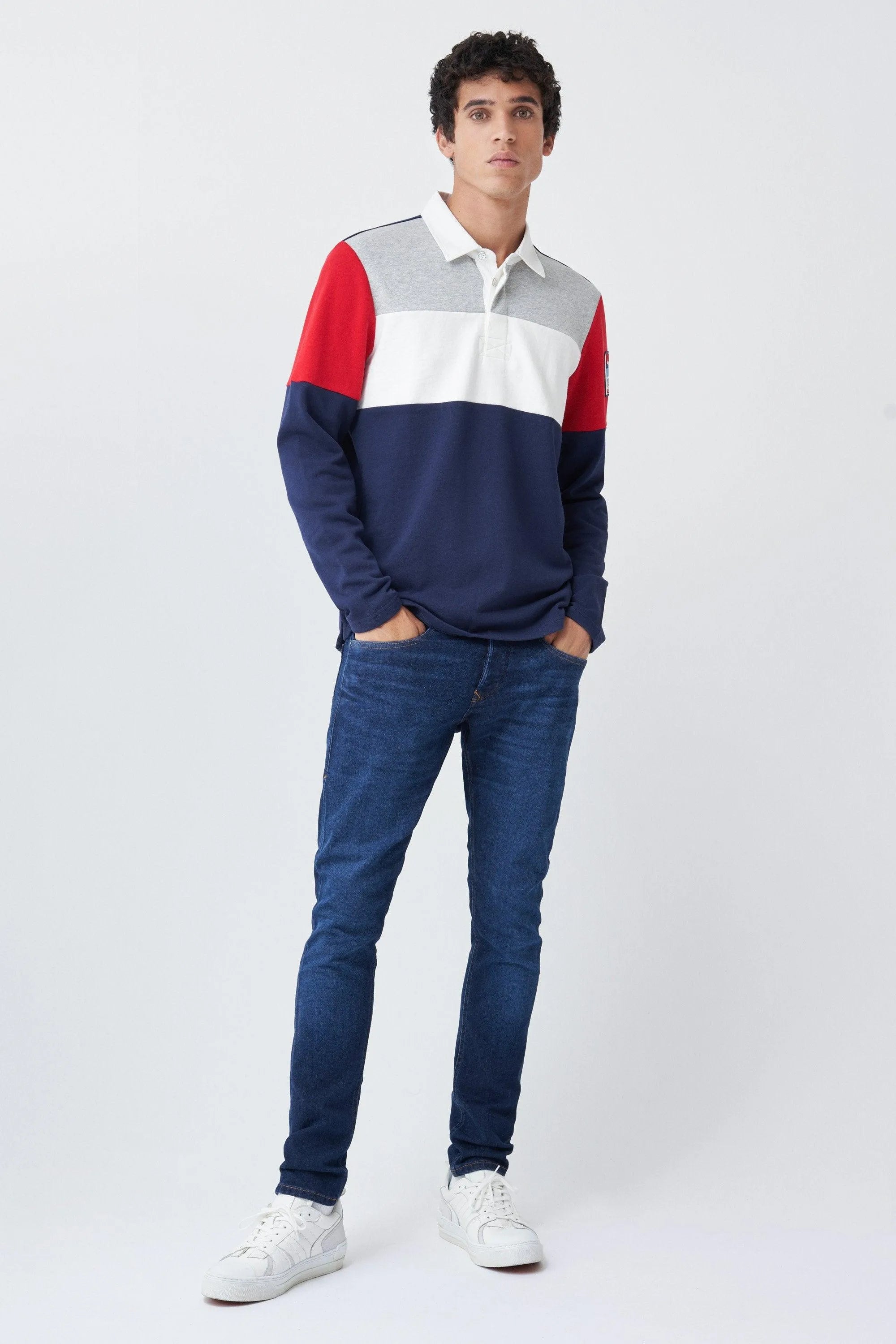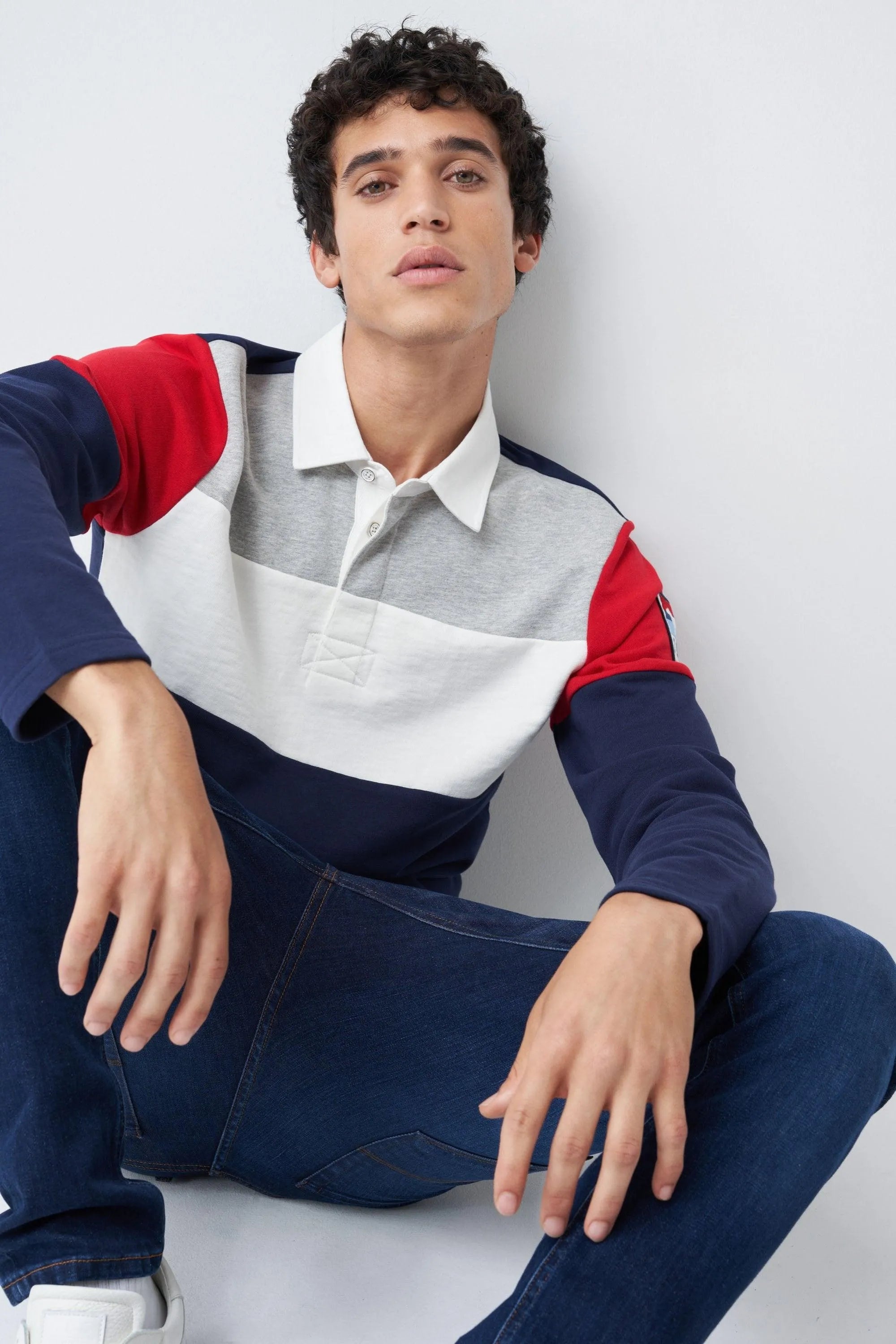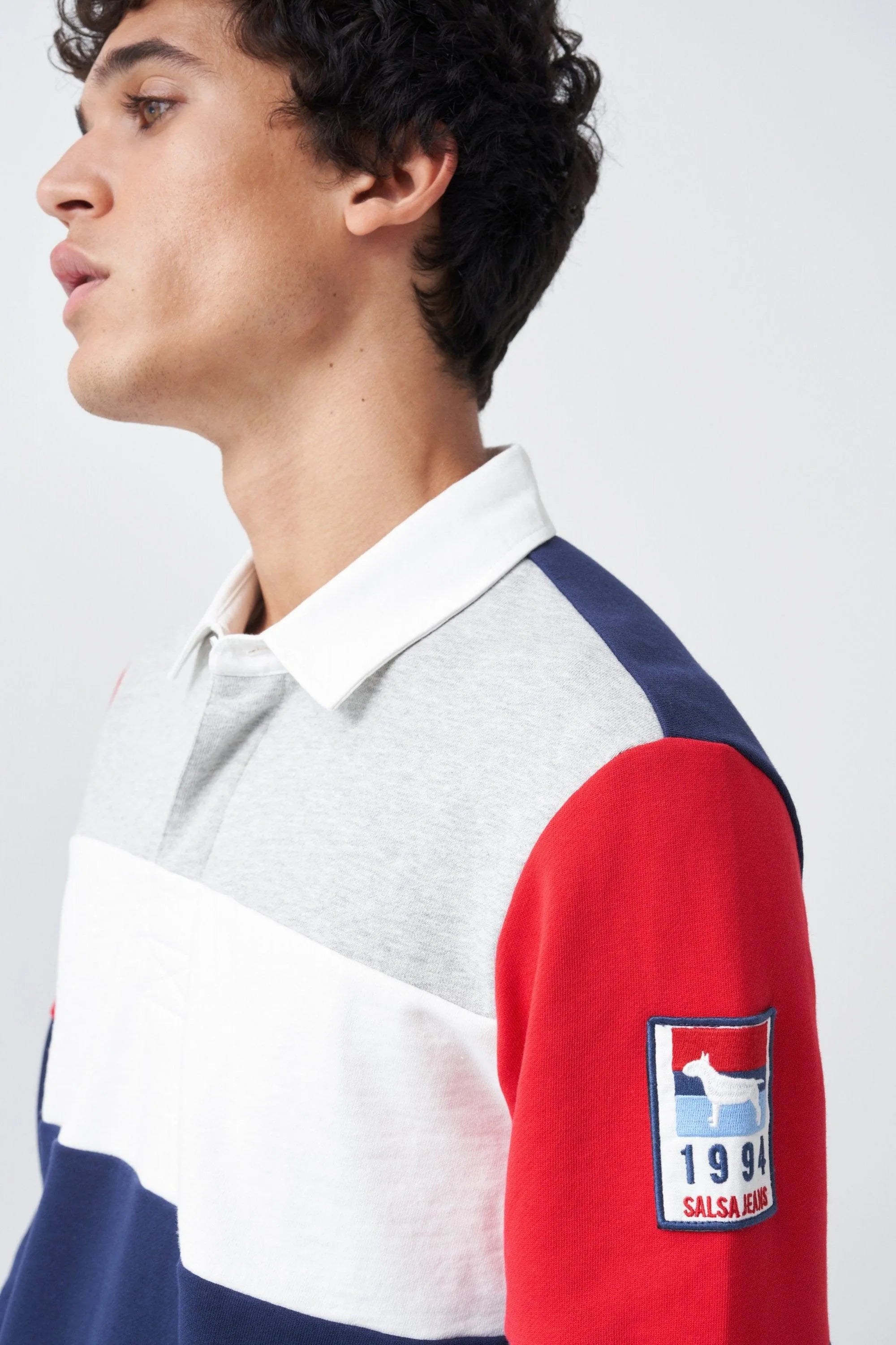 Mehrfarbiges Langarm-Poloshirt. Reverskragen mit drei Knöpfen auf der Vorderseite. Siebdruck „Salsa Jeans“ auf dem Ärmel. Normaler Schnitt. Das Model trägt Größe L und hat folgende Maße: Größe: 188 cm, Brustumfang: 90 cm, Taille: 73 cm, Hüfte: 96 cm.