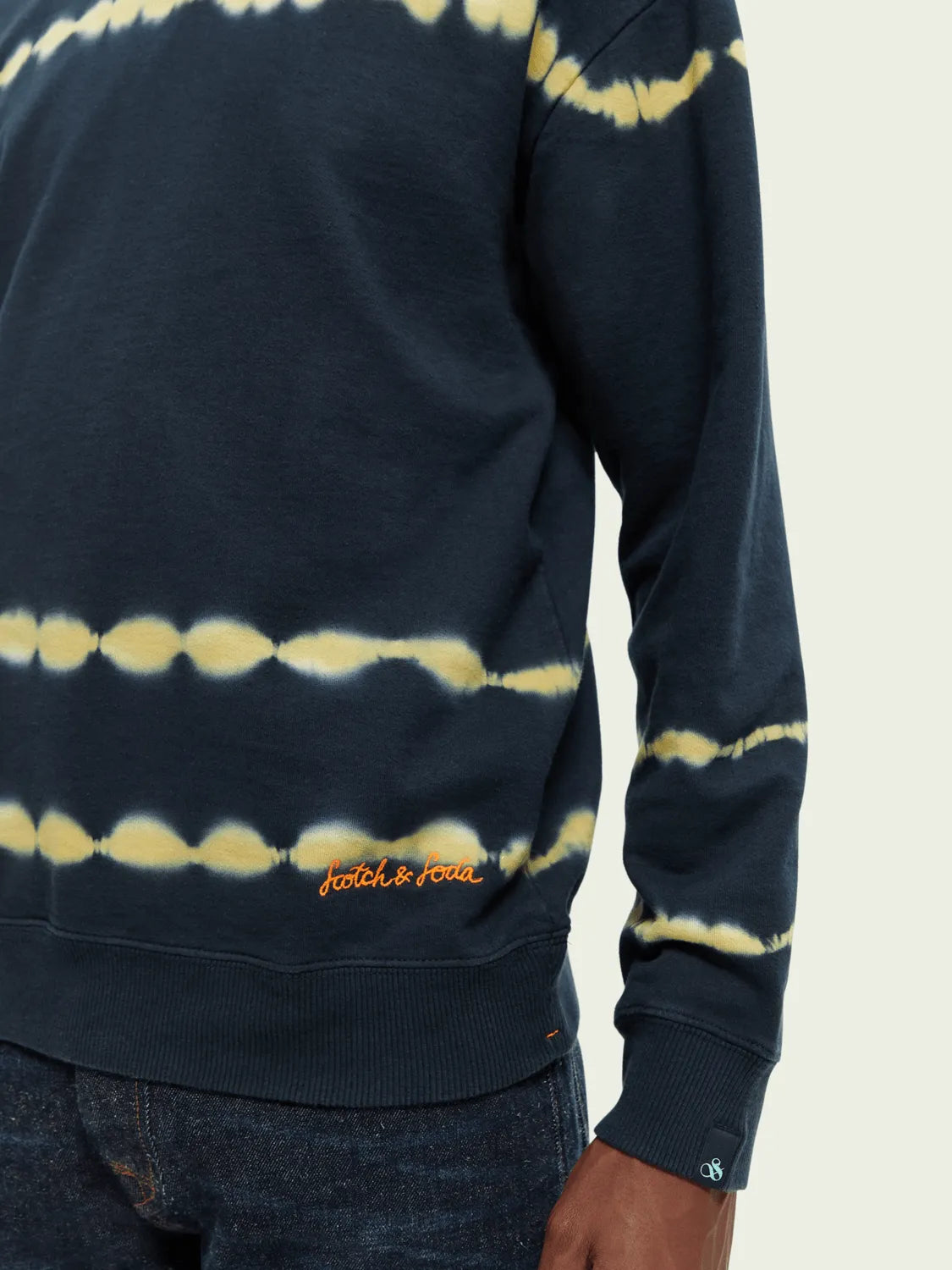 Dieses Rundhals-Sweatshirt wird zu einem Ihrer Lieblingskleidungsstücke. Es verfügt über ein Batik-Design, gerippte Ausschnitte und Bündchen und ist mit dem gestickten Scotch & Soda-Logo versehen. Da es aus Fleece besteht, bietet es den ganzen Tag über Komfort und Wärme.