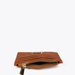 Tarjetero compacto en material texturizado con monograma grabado en patrón rombos. Incluye múltiples ranuras para tarjetas y un compartimento con cremallera. Detalle de logotipo metálico.