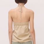 - Diseño halter con tirante al cuello